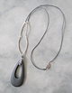 flower stormワックスコードネックレス 長さ56cm おおぶりラバー製ドロップチャーム ダークグレー(アクセサリー しずく TOHOビーズ 国産 日本製)