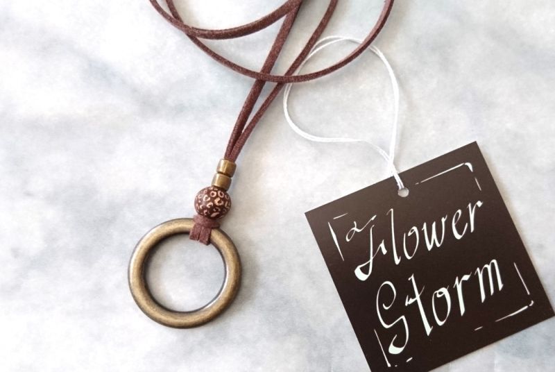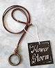 flower stormレザーネックレス 小粋な柄入りビーズ使い アンティークゴールドリングネックレス (眼鏡掛け グラスホルダー メガネホルダー メンズ レディース 日本製))