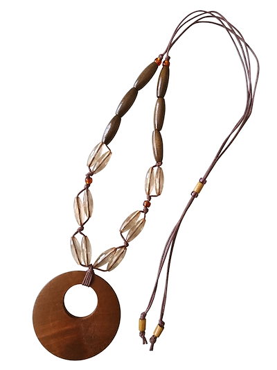 flower storm長さ調節可 ウッドのぬくもり&アクリルビーズの優しい輝きロングネックレス オレンジブラウン(アクセサリー 木製 樹脂 蝋引き紐 TOHOビーズ 天然素材 日本製)
