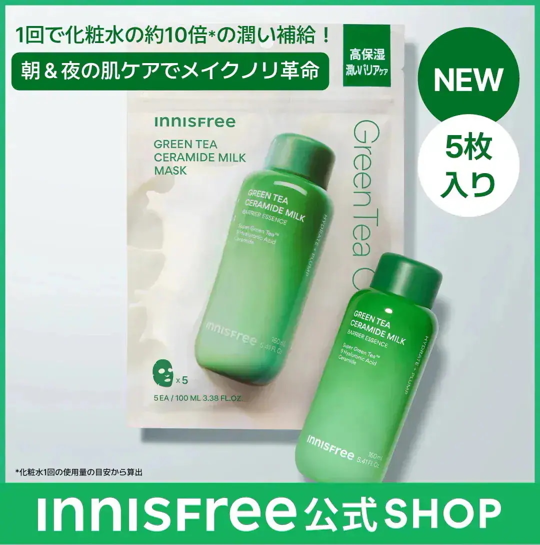 5 5mim*** 2026.04.08 タイプ:グリーンティー セラミド ミルク エッセンスマスク 5枚入りオプション : タイプ:グリーンティー セラミド ミルク エッセンスマスク 5枚入り