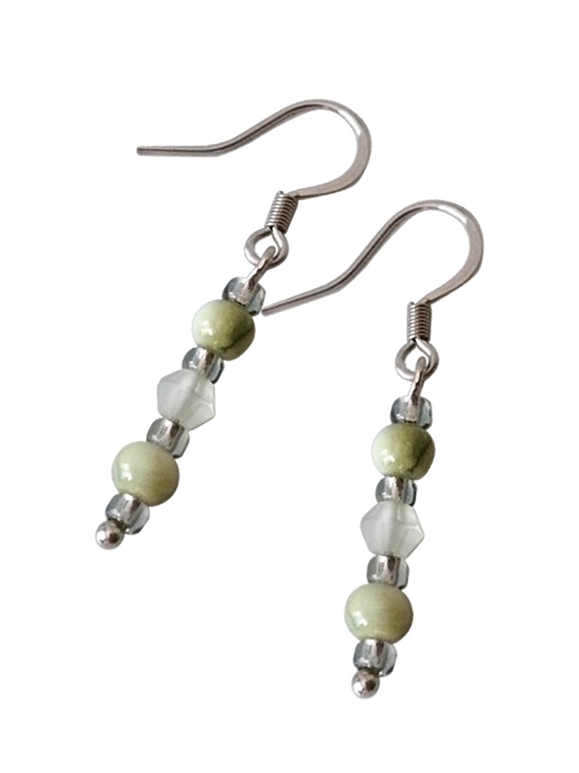 flower stormニュアンスカラーガラスビーズのステンレス製フックピアス モーヴ/セージ(アクセサリー サージカルステンレス TOHOビーズ 日本製 )