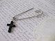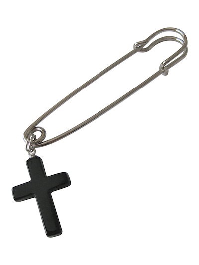 flower stormストールピン/ブローチ 可愛いチャームが下がったキルトピン 天然石ブラックオニキスのクロス