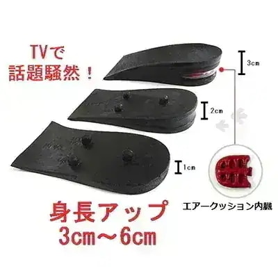 つい先日購入したインヒールのスニーカーの高さ?に満足できず私の足より少し大きめだったため、このインソールを買ってみたのですが三段階にしても違和感なく履けたので満足です!後ついでに身長も高く見えるので私的にははなまるです笑 -