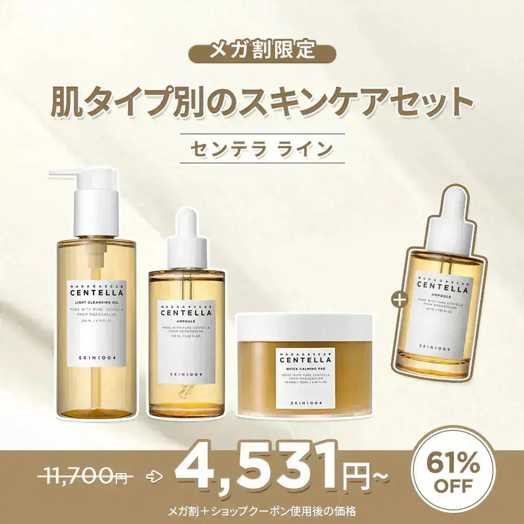 5 5033*** 2025.03.18 オプション 1つ目の商品:センテラ ライトクレンジングオイル オプション 2つ目の商品:センテラ クイックカーミングパッド オプション 3つ目の商品:選択しない (本品4点セットになります。)(+1500円)オプション : オプション 1つ目の商品:センテラ ライトクレンジングオイル / オプション 2つ目の商品:センテラ クイックカーミングパッド / オプション 3つ目の商品:選択しない (本品4点セットになります。)(+1500円) 肌タイプ : 乾燥肌 肌トーン : ブルベ