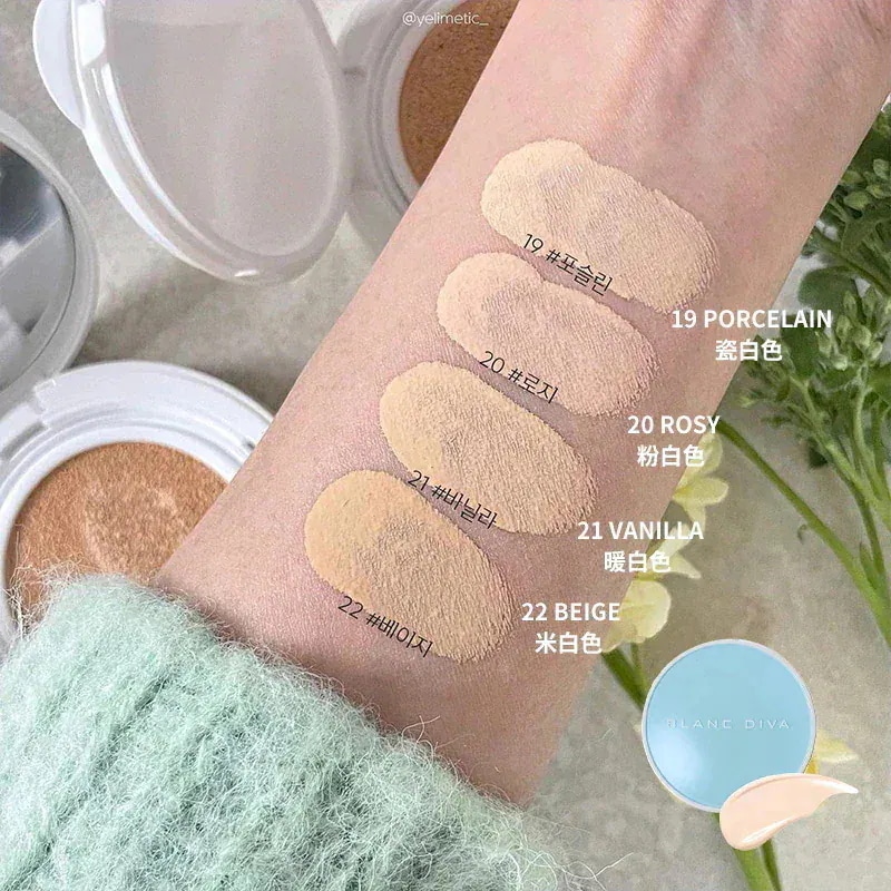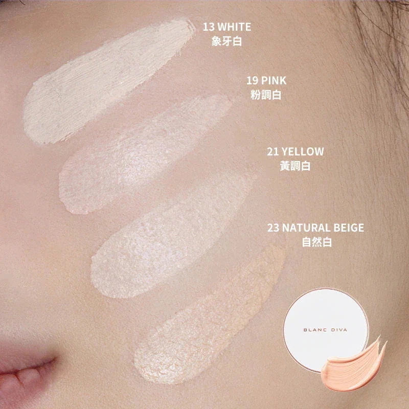 BLANC DIVA ランダム発送で yellow が送られて来ました。赤みカバー、毛穴カバーとあり私には丁度良かった色でした。UV効果もあり軽い付け心地でしっとりキープ長持ちです。