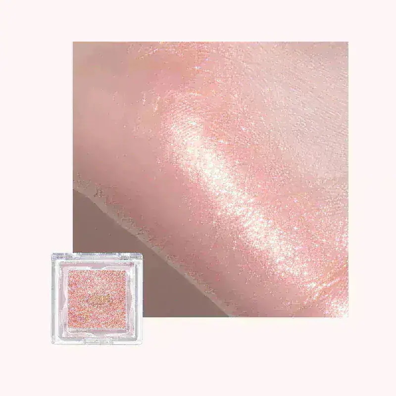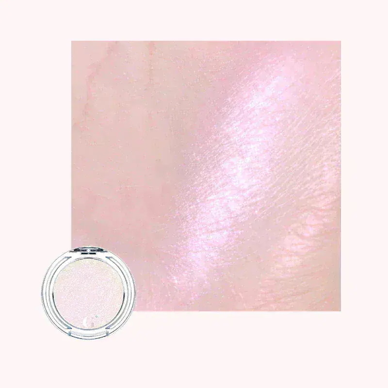 パッと見は真っ白のハイライトで使いにくい?と思いきや、角度を変えるとピンクの輝きを楽しめます。ピンクラメと同時にほんのりとグリーンやシルバーのラメ感もあるので「今日のハイライトどこの?」と聞かれるくらい…他者から一目置かれるハイライトだと思います。お肌にのせる際は、指で少量をちょこんとのせるとナチュラルに、ブラシなどで広めにつけると本当にお洒落なメイクになります。ギラつく輝きではなく、お肌に溶け込むのにちゃんと主張してくれる仕上がりが日常使いしやすくてお気に入り◎さらっとした粉質ながら、ラメ飛びはないのでお顔の予期しない部分にラメがついちゃったりすることも少ないと思います。