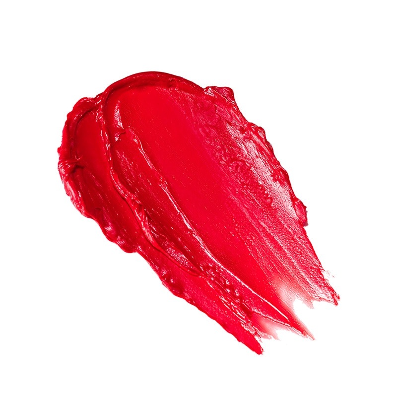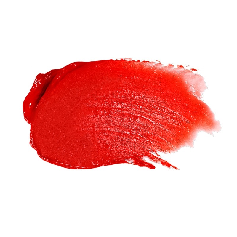 青みのあるシアーな赤色です。透け感があって赤リップだけど派手になりすぎず使いやすいです。リップは硬めで仕上がりはセミツヤです。色持ちは普通くらいです。ティッシュで抑えるだけだと色が残り、擦ると消えます。