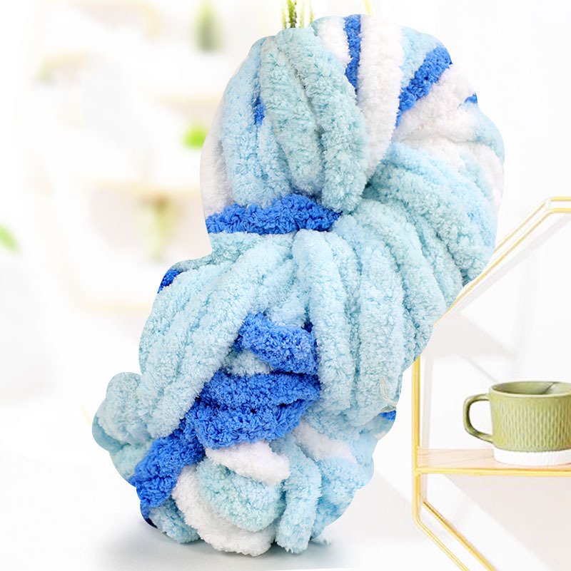 以外に紐が太くてでもこれで作ったら暖かそう!紺色かと思ったら結構青かった