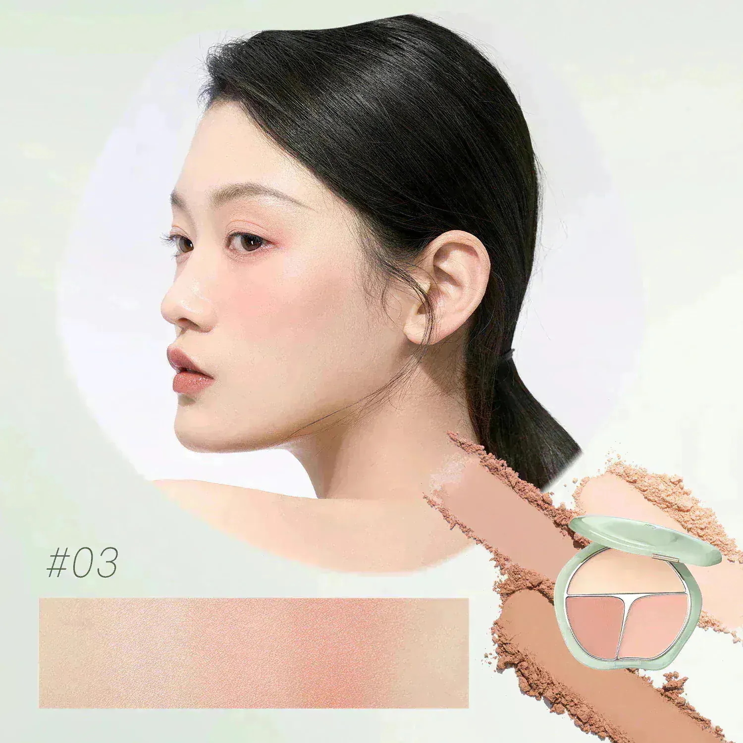 パール感などは無いですが、一つで膨張色、メインカラー、シメ色とありこれ一つで軽く小顔効果も出せるよく考えられた商品だと思いました。