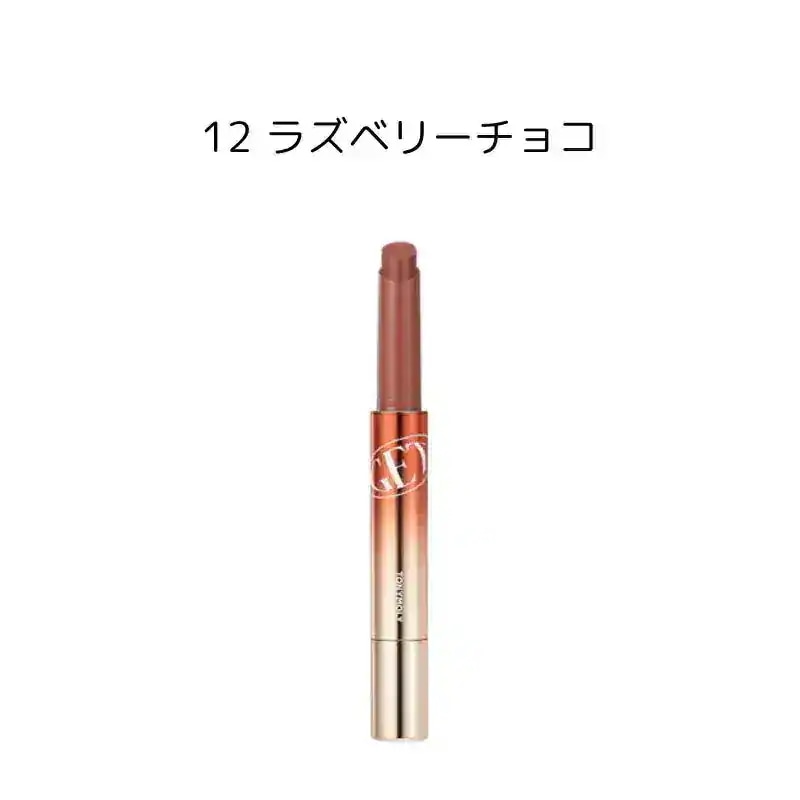 youtuberの方(どなたか失念)がお勧めされてて以前メイクアップアーティストのGeorgeさんもおすすめされていたので購入してみました。このタイプのリップは他でも数本気に入って使用していますが、トニーモリーのものはティント効果もあってプランパー効果もあるとの事で期待大!使用した感じではムチっとした質感と高保湿そして軽いプランパー効果を感じますがスースー感位なので大丈夫。02、12、13を購入しましたが、12、13はチョコレートの香りがほのかにして美味しそう(笑)お洒落なカラーで素敵です♡02番は大人っぽいカラーで素敵でした。パケもゴールドで高級感あって良きですね♪もっと注目されても良い名品だと思います。