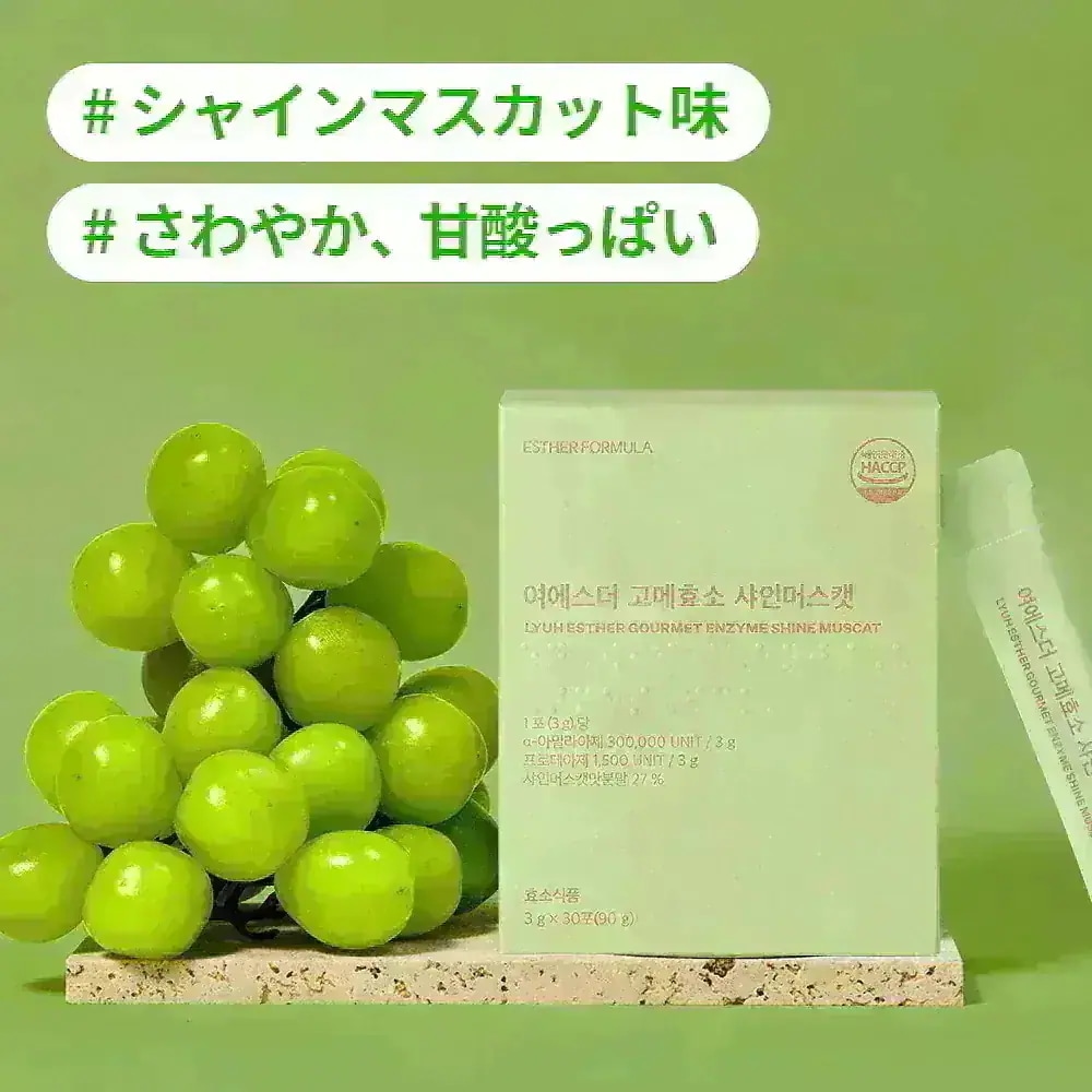 5 5unu*** 2026.04.08 Type:ヨエスターグルメ酵素(シャインマスカット味×30包)オプション : Type:ヨエスターグルメ酵素(シャインマスカット味×30包) 肌タイプ : 敏感肌 肌トーン : ブルベ 肌の悩み : 乾燥, しわ・たるみ