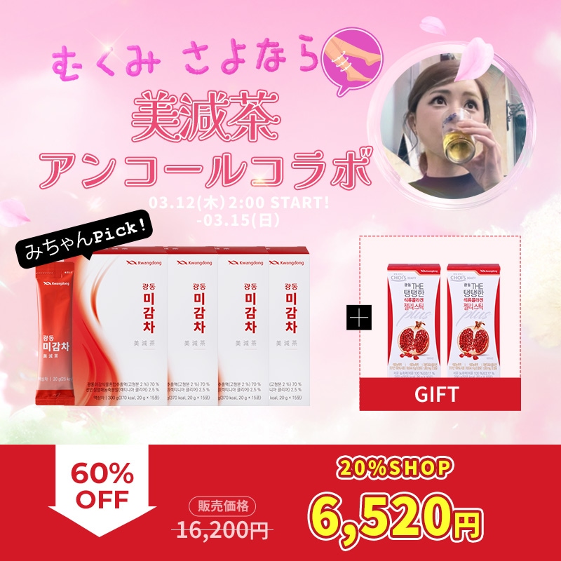 5 5its*** 2026.03.12 Type:SET2 美減茶 15包 * 4個 (60包) +[GIFT] ザクロゼリー10包*2個(20包)(+1225円) 追加購入:選択しないオプション : Type:SET2 美減茶 15包 * 4個 (60包) +[GIFT] ザクロゼリー10包*2個(20包)(+1225円) / 追加購入:選択しない 肌タイプ : 混合肌 肌トーン : ブルベ