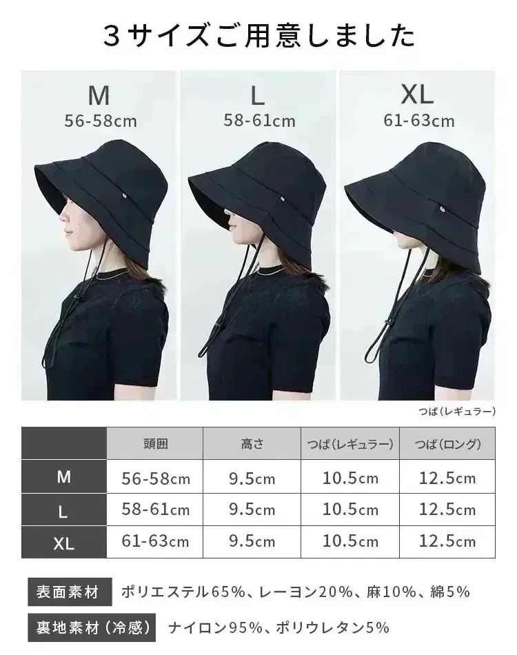 Mサイズのロングにしました。早速犬の散歩に被って行きましたが、ツバが長くて、左右を確認する時に見にくいですが、しっかり太陽を遮ってくれました。首紐も付いてるので風が吹いても平気でした。