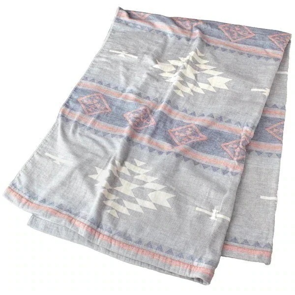 【メガ割SALE】タオルケット 今治タオル 日本製 140×190cm ネイティブ柄 オルテガ 綿100% ガーゼケット シングル カラー:グレー