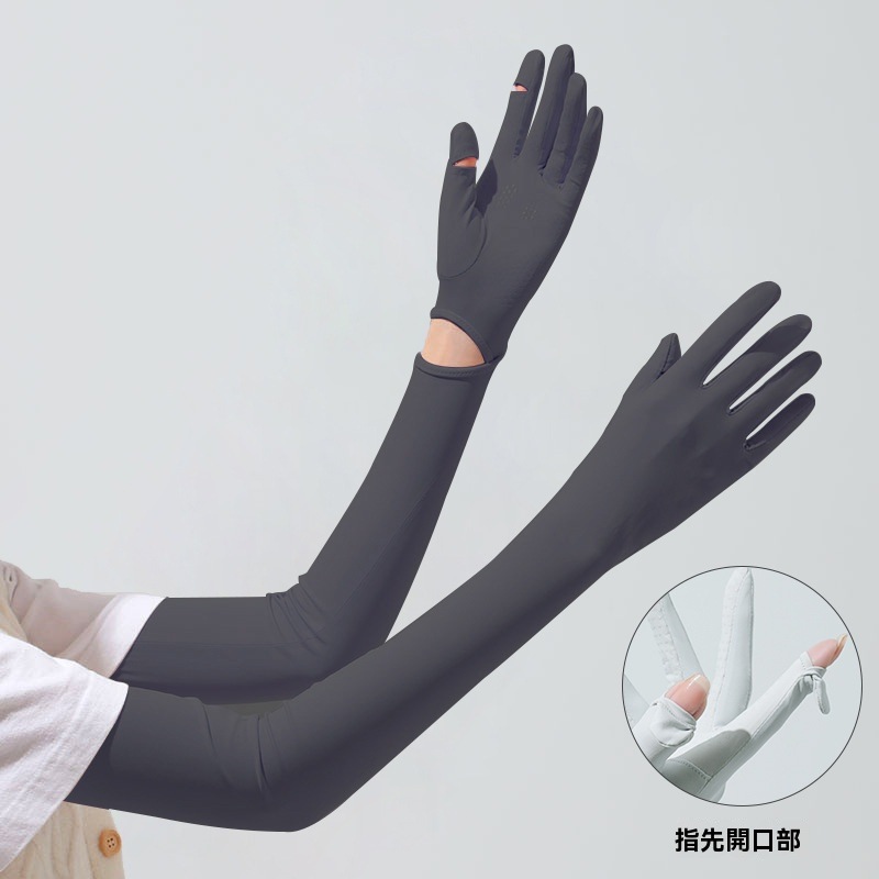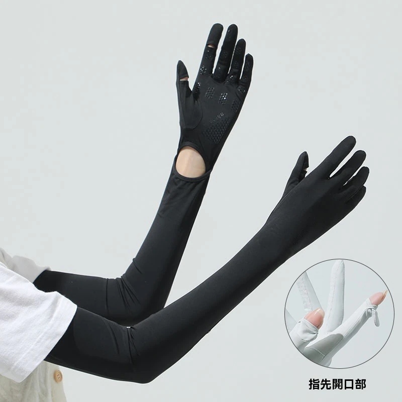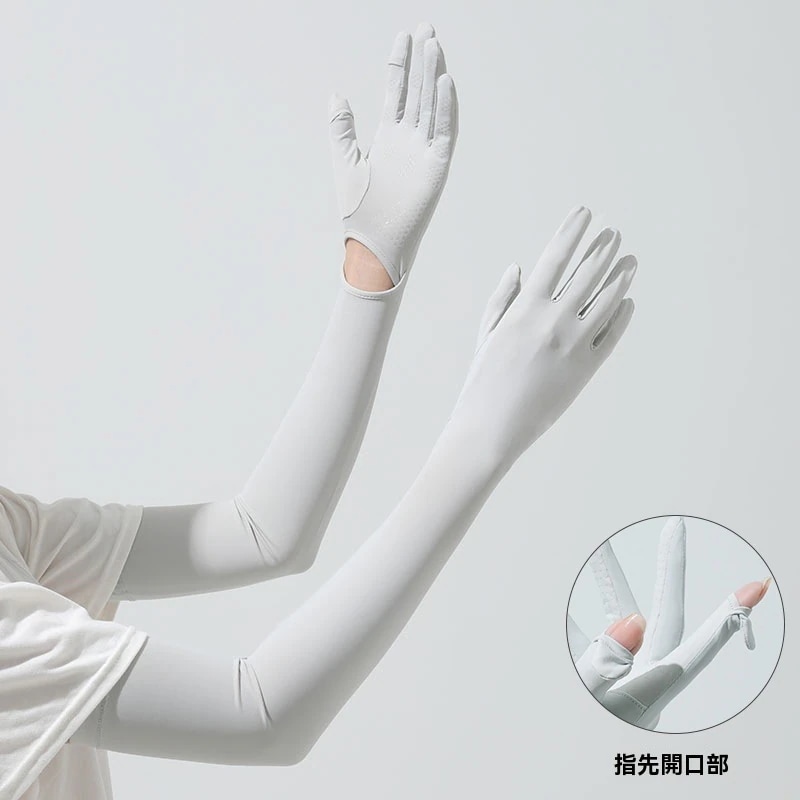 今まで買ったアームカバーの中で1番いい!指先までカバーできてスマホ触る時も指先だけ出せるし最高!なめらかですぐ乾きそうな素材もめちゃくちゃいい。ただ、指先の穴はかなり小さめなので指の太い人はあんまりでないかも。
