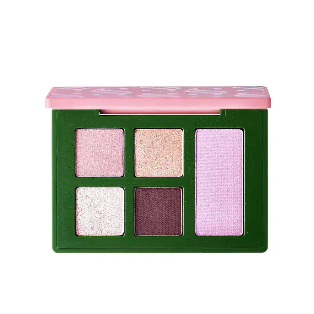アイシャドウとチークが一体化したとても使いやすいパレット!くすみがかったピンクカラーが中心となったアイシャドウと、透明感あふれるラベンダーカラーのチークでいつもと一味違ったメイクを楽しめます✨粉質もしっとりしていて想像以上の高発色!動画の通りラメも濡れ感があって可愛すぎる、、おすすめです💖