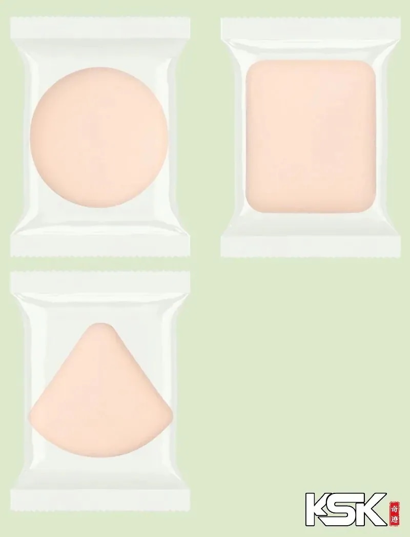 安いのでメガポで4セット買いました。丸、三角、四角がほぼ同数入っていて良かったです。この手のクッションパフはこすると表面の生地が裂けてしまうので1〜2回しか洗えないので使い捨てできるお値段で買えるのは助かります。