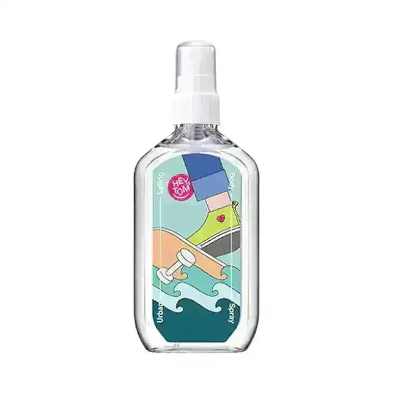 プラスチックのスプレーボトルに紙のカバーがかかっていて、なんか面白い感じです。