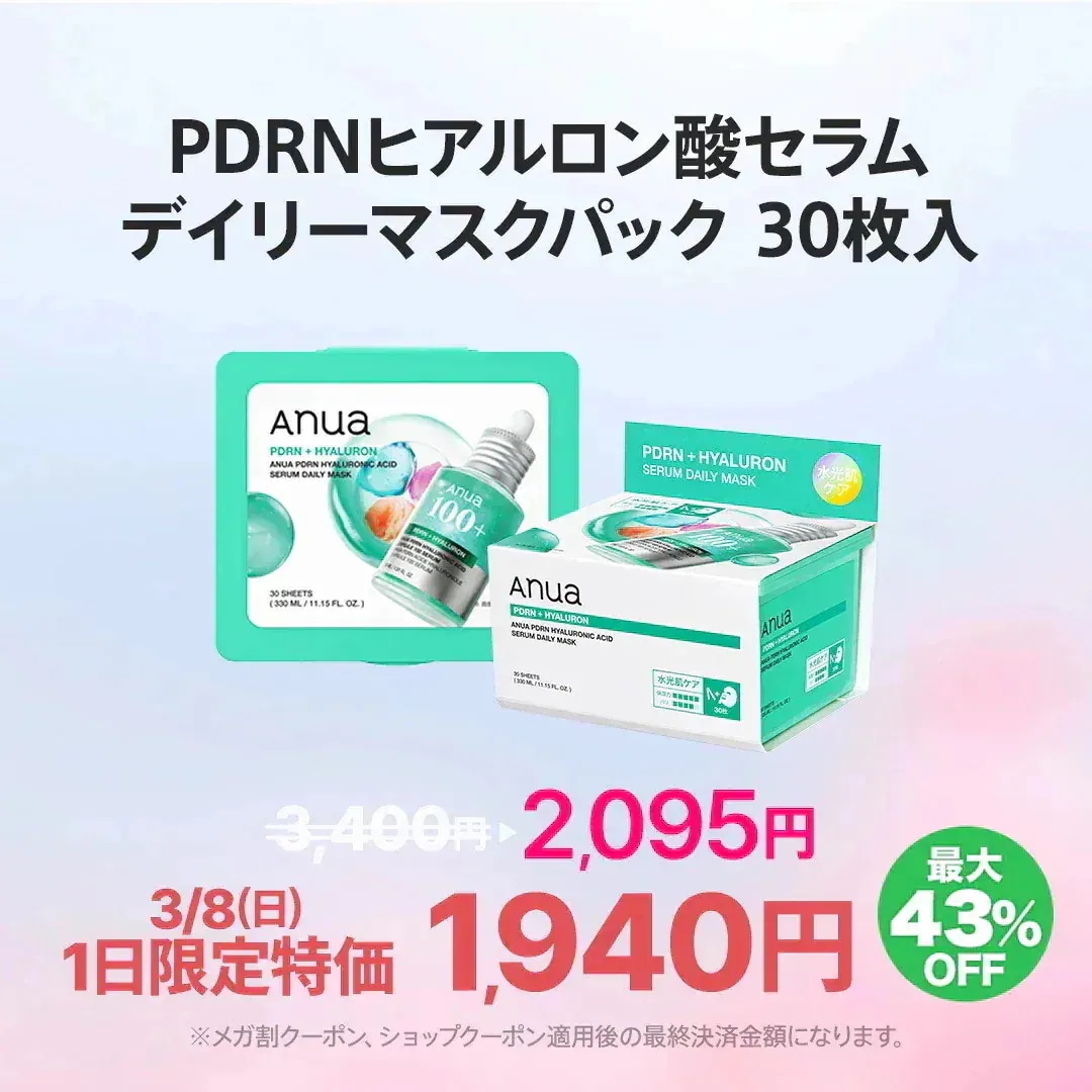 5 5miu*** 2026.02.12 選択:PDRNヒアルロン酸セラムデイリーマスクパック30枚入り(+100円)オプション : 選択:PDRNヒアルロン酸セラムデイリーマスクパック30枚入り(+100円) 肌タイプ : 乾燥肌 肌トーン : イエベ 肌の悩み : ニキビ・肌荒れ, くすみ・色むら, 乾燥