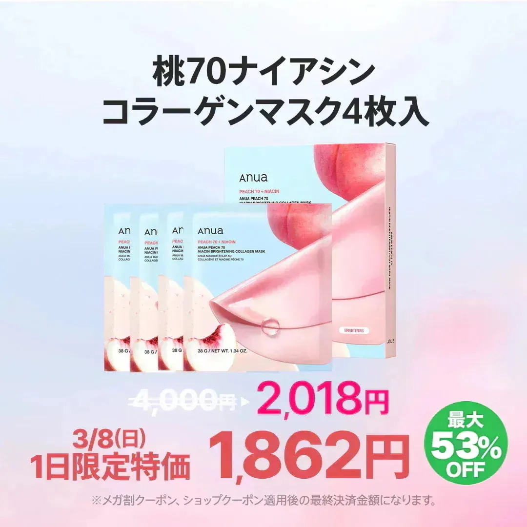 まず見た目がすごく可愛いパッケージで気分が上がるタイプのシートマスク。シートはやや厚めだけど柔らかくて、顔にしっかり密着してくれます。 美容液はとろっとした質感で量も多め。 つけた直後はしっとり→外すとツヤっとした水光肌っぽい仕上がりになります。ベタベタ感はそこまで強くなく、保湿重視だけど使いやすいタイプ。