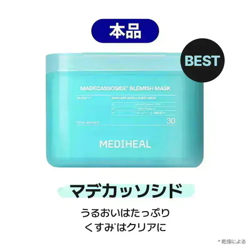 VTのシカ30枚マスクも買ってみたので私なりに比較すると、鎮静、保湿力はメディヒールのマデカッソシドが格段に上、マスクの形はVTの方が大きめでアイホールも小さめなので良い。(メディヒールの方はアイホールが大きめなので、一番気になる顔の中心部が空いてしまう。なので、真ん中に寄せるように貼り付けるので、おでこの上の方は隠れません)シートの質はどちらも薄めで、メディヒールは柔らかい、VTのはパリっとしています。どちらも良いです。