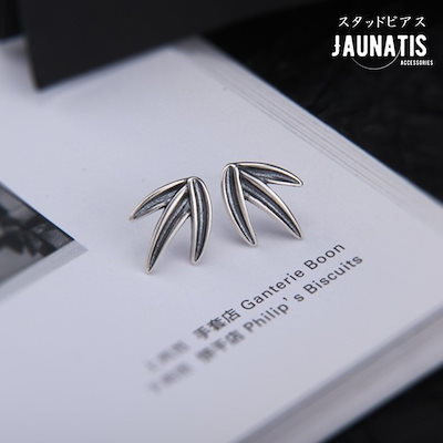 JAUNATIS ACCESSORIESピアス スタッドピアス 両耳 メンズ レディース ユニセックス 男女兼用 笹 竹の葉 葉っぱ 植物 ヴィンテージ風 ナチュラル カジュアル ユニーク S925 925シルバー アレルギー対応 おしゃれ