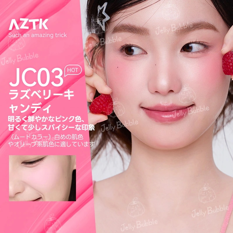 01と05購入。絵の具みたいなテクスチャーでするっと伸びました。量も調整しやすくてとても使いやすかったです。01をベースに仕込むと血色感のあるトーンアップになるのでめちゃくちゃ可愛いと思います。しっかりチークとして使うなら05。自分の肌トーンで使うとくすむかなと04敬遠したけど追加しそうです。。バズってるのも納得です!