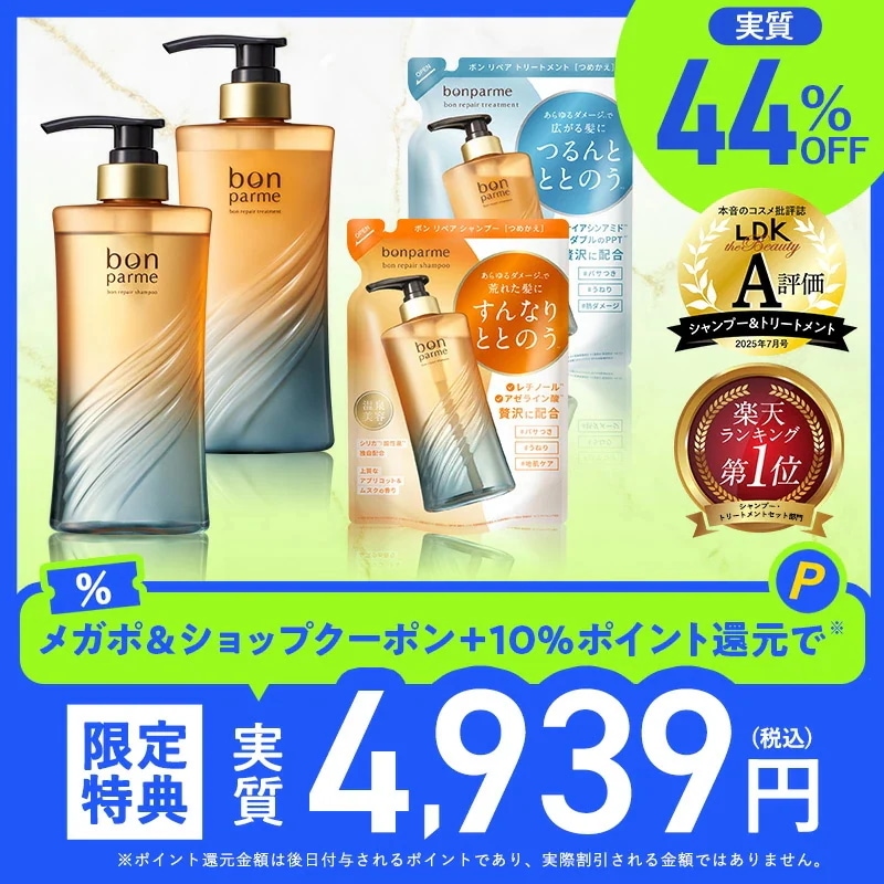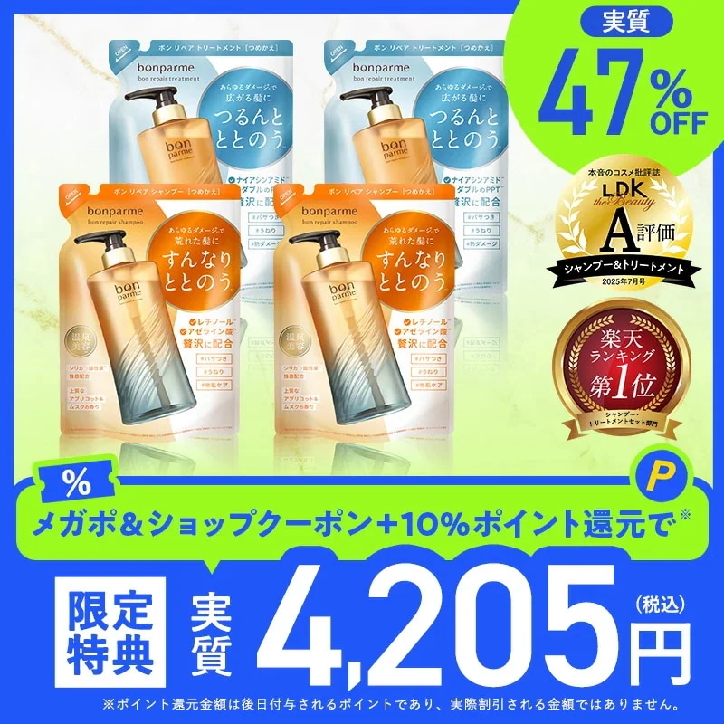 5 5yos*** 2026.02.11 タイプ:シャンプートリートメントセット【詰替え】(-2090円) ご注文後の変更・キャンセルは原則できかねます。:承知致しました。オプション : タイプ:シャンプートリートメントセット【詰替え】(-2090円) / ご注文後の変更・キャンセルは原則できかねます。:承知致しました。 肌タイプ : 混合肌 肌トーン : イエベ 肌の悩み : ニキビ・肌荒れ, 毛穴, くすみ・色むら, しわ・たるみ, シミ