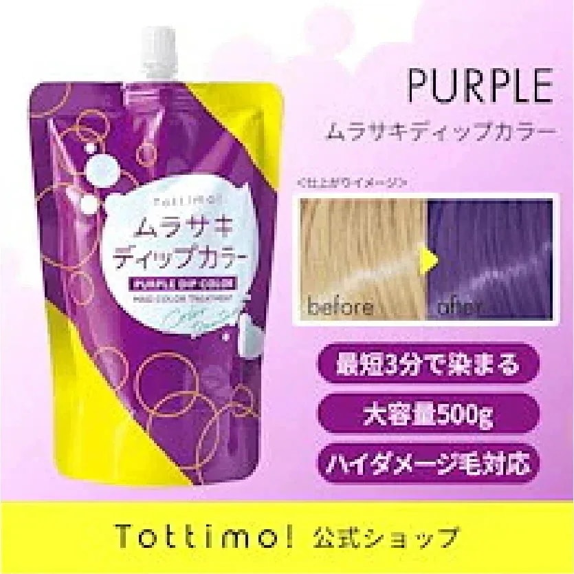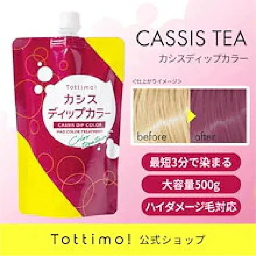 ずっとピンクを愛用しているので、今回はピンク3個、ブリーチはしていませんがカラーケア目的でトリートメント1個購入しました。サロンでもカシスピンクっぽい色味で染めてもらうのですが少し物足りなく、トッティモのピンクを使うとすごく好きな色になるので、染めに行くたび毎回すぐトッティモ使ってしまいます。