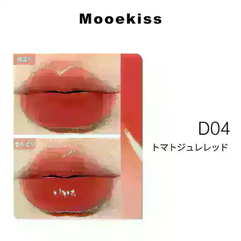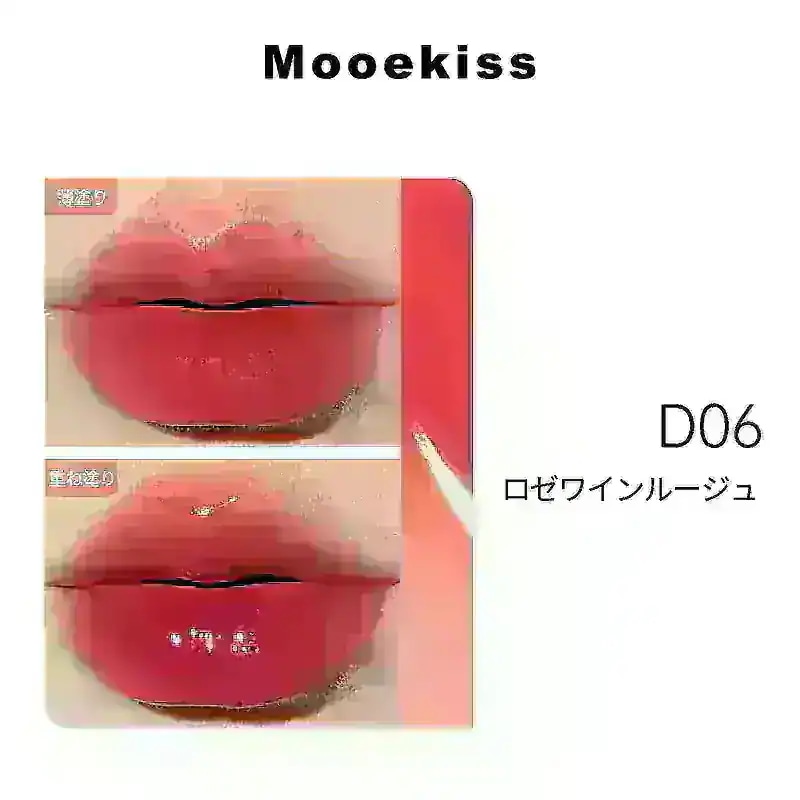 イエベ秋です。韓国リップは人気があるのをつけても荒れるんですが、これは荒れませんでした。見た目ほど濃くなくてD03番は自分にピッタリな色でした。おまけがついてきました。おまけの色は01番で濃い深みのある赤で全く似合わなかったんですが、ティッシュオフしてmooekissのグロスをつけたら何とか使えるかなーと思いました(おまけなので)。