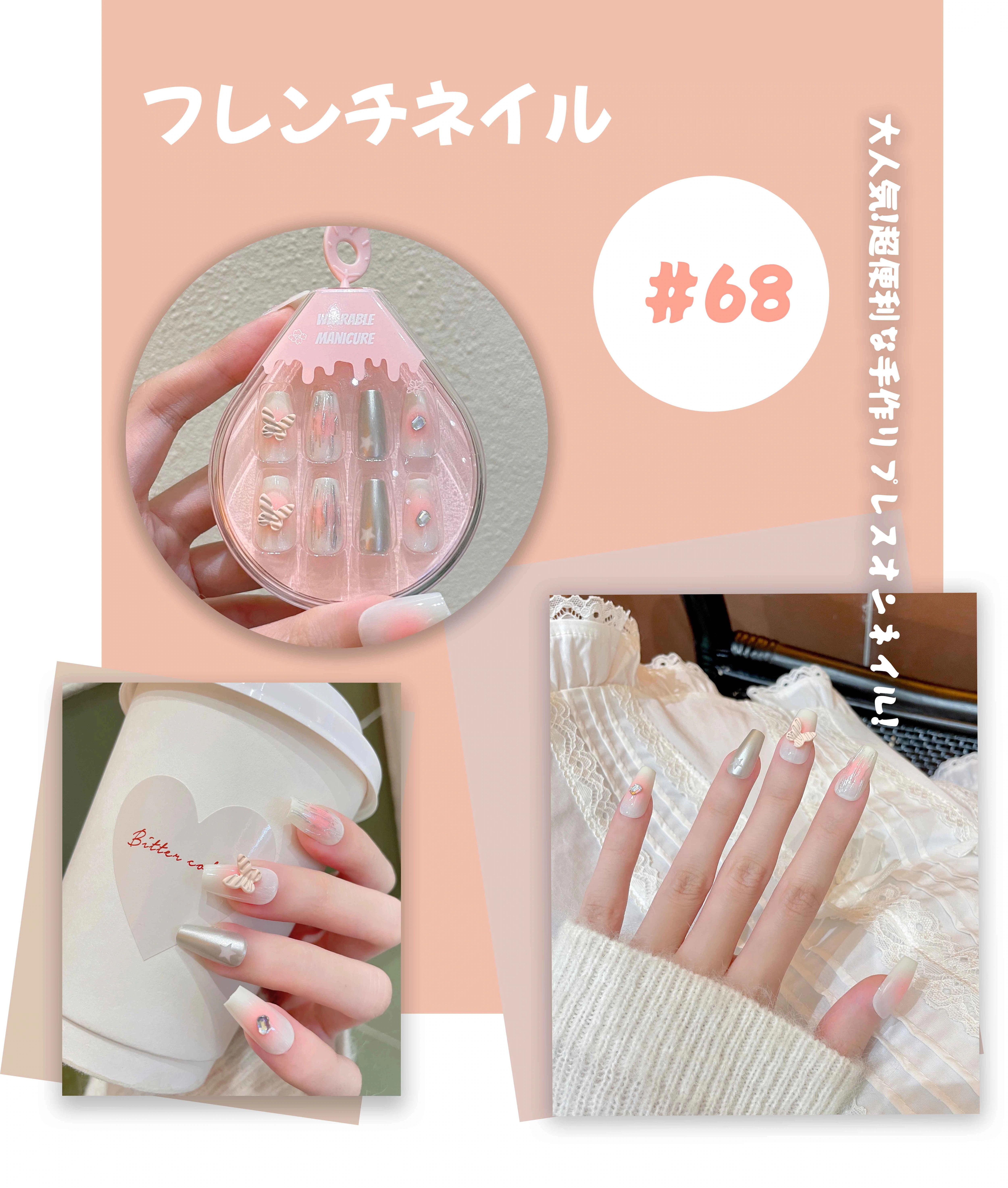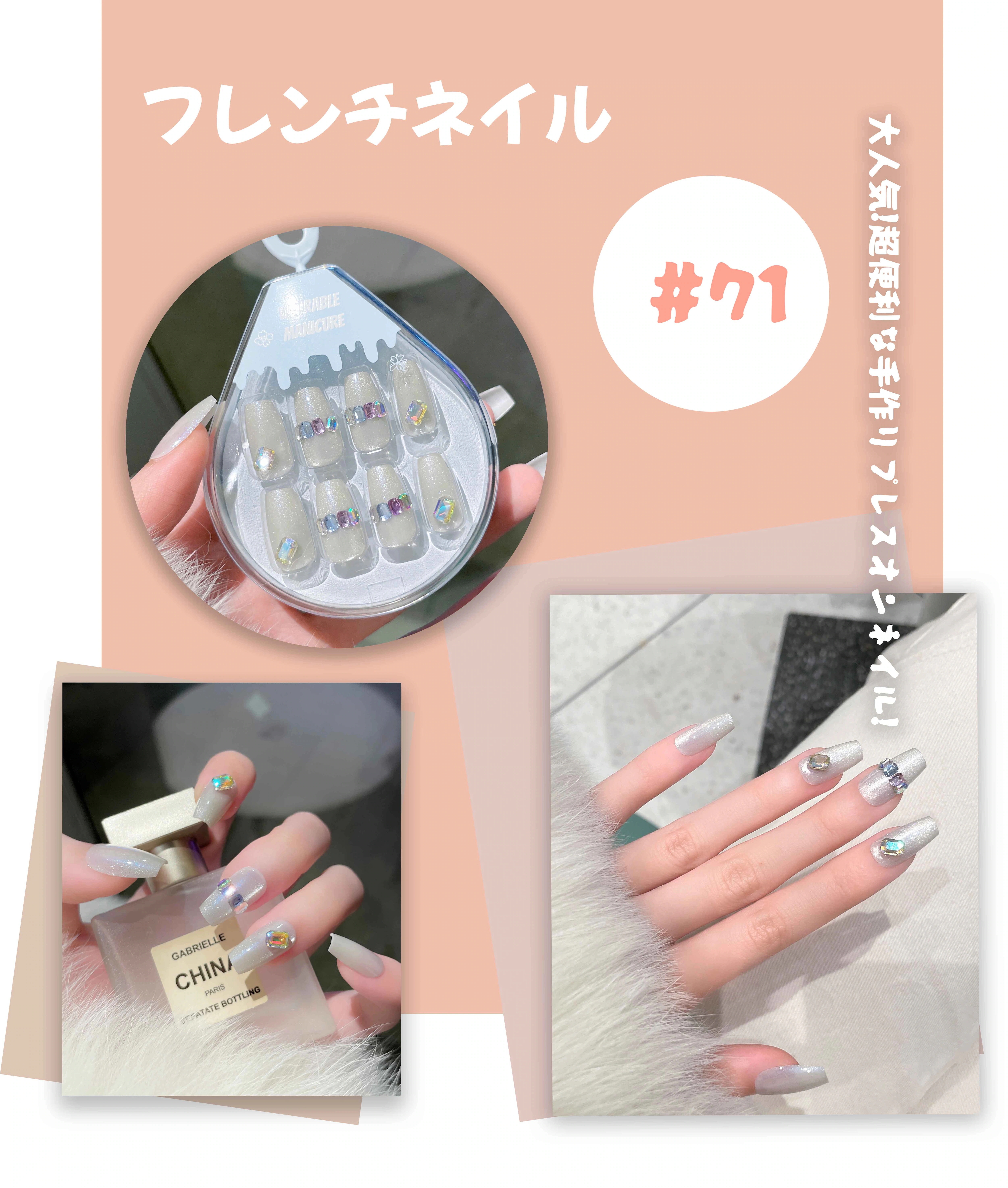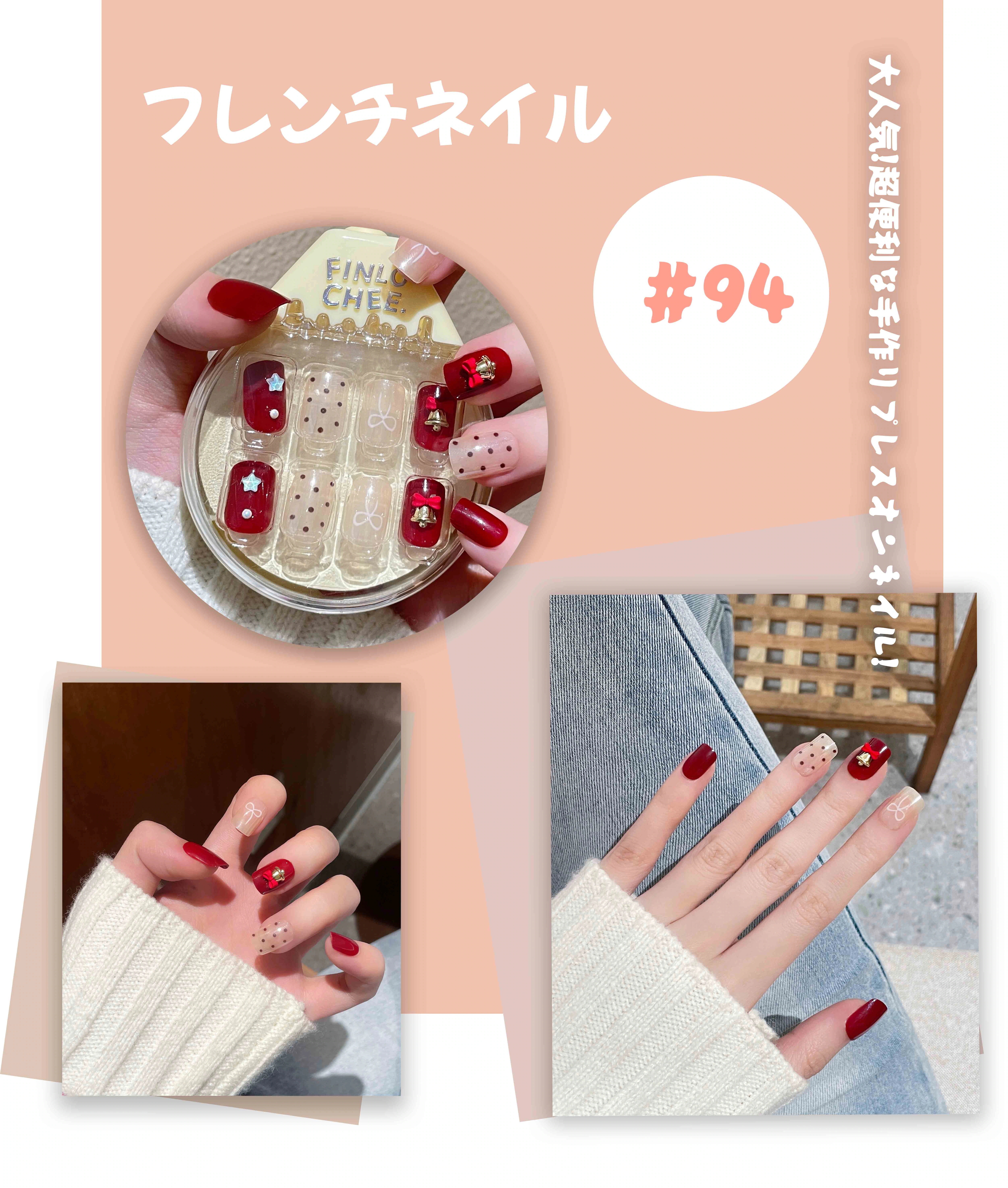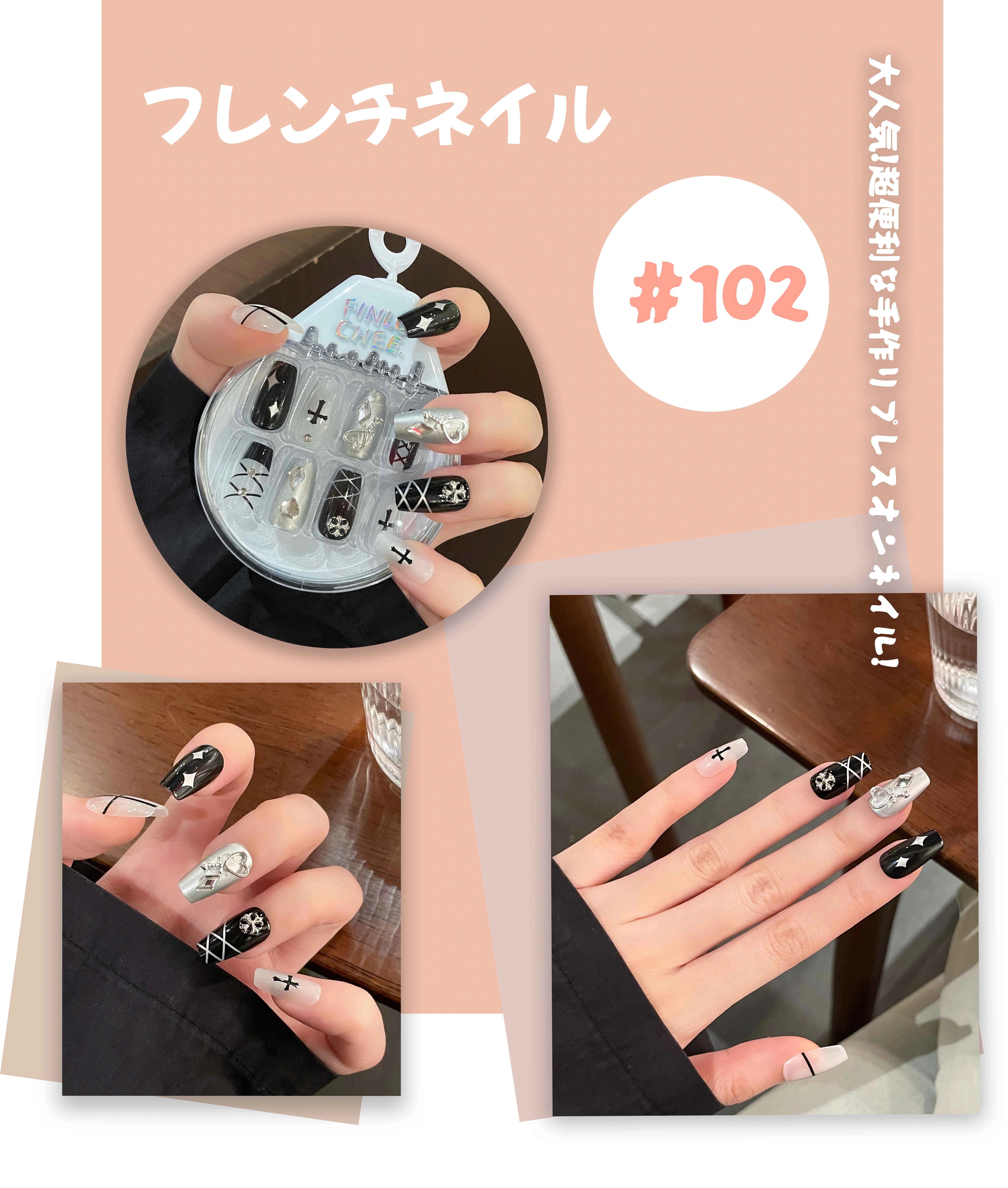 貼るだけで本当に簡単でした。デザインも写真通りで可愛いです。サイズも意外と合いやすく、付属の粘着グミでしっかり密着しました。遠目だとサロンネイルみたいで満足。耐久性も問題なくて、この値段なら十分過ぎる満足感です。