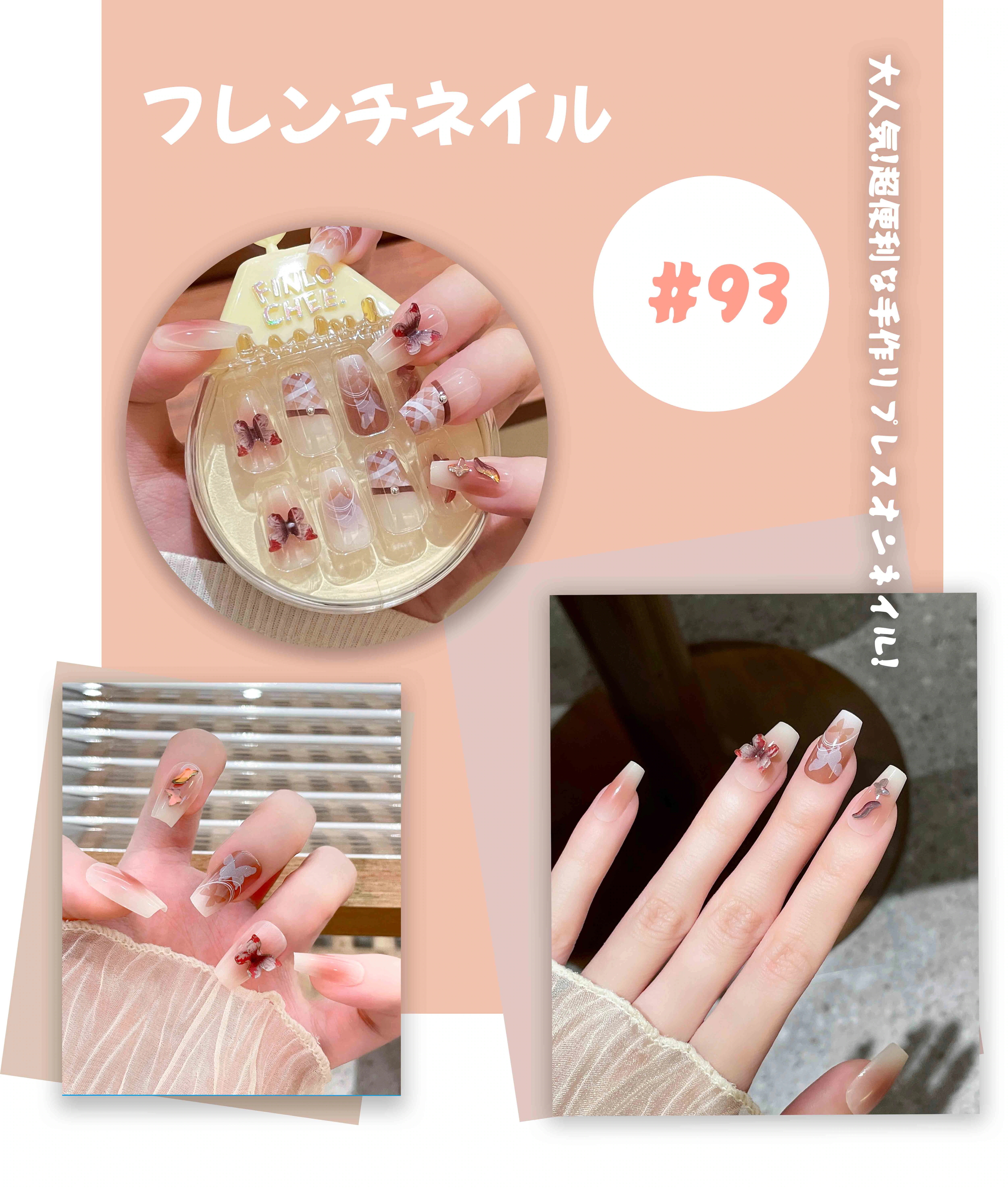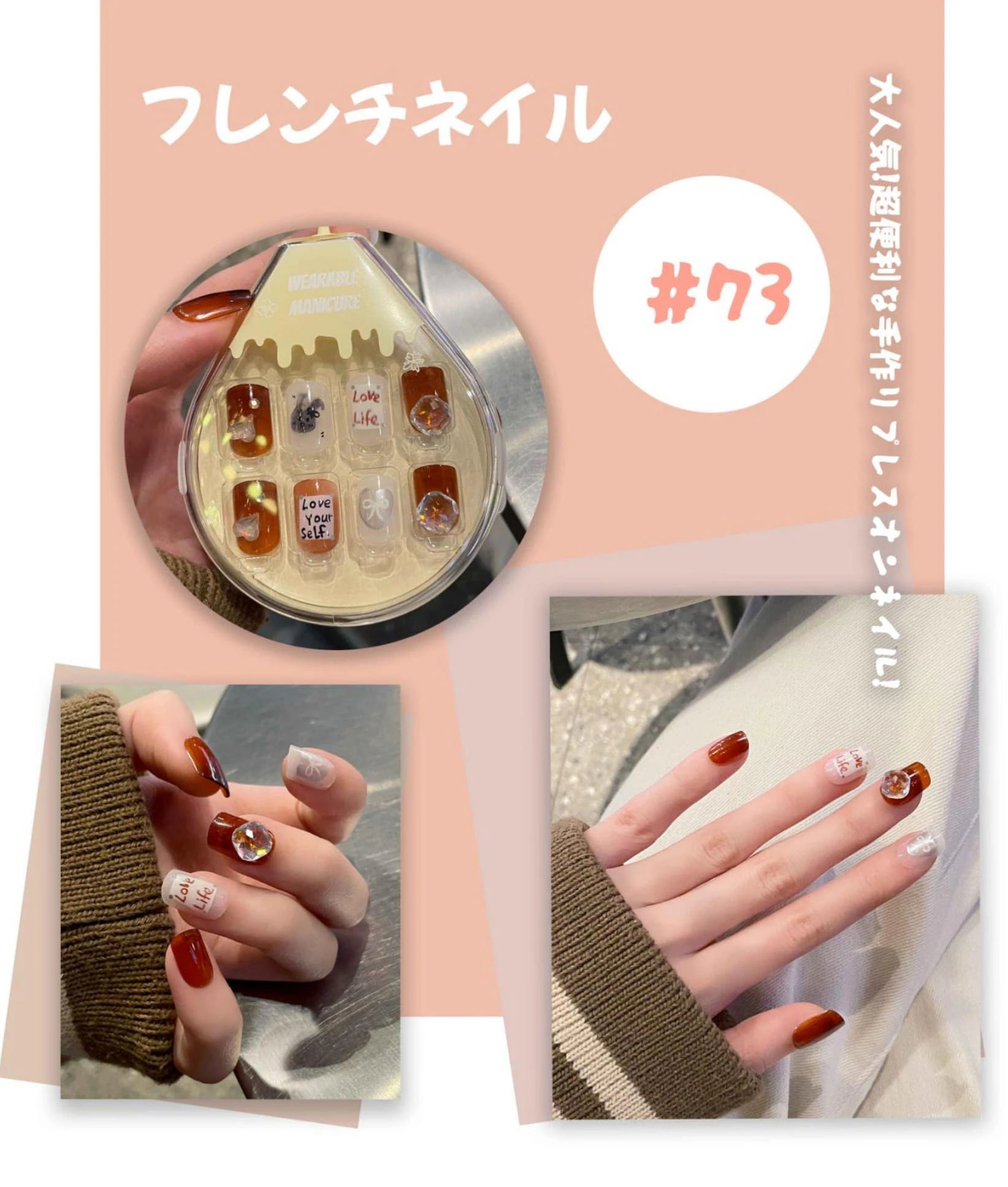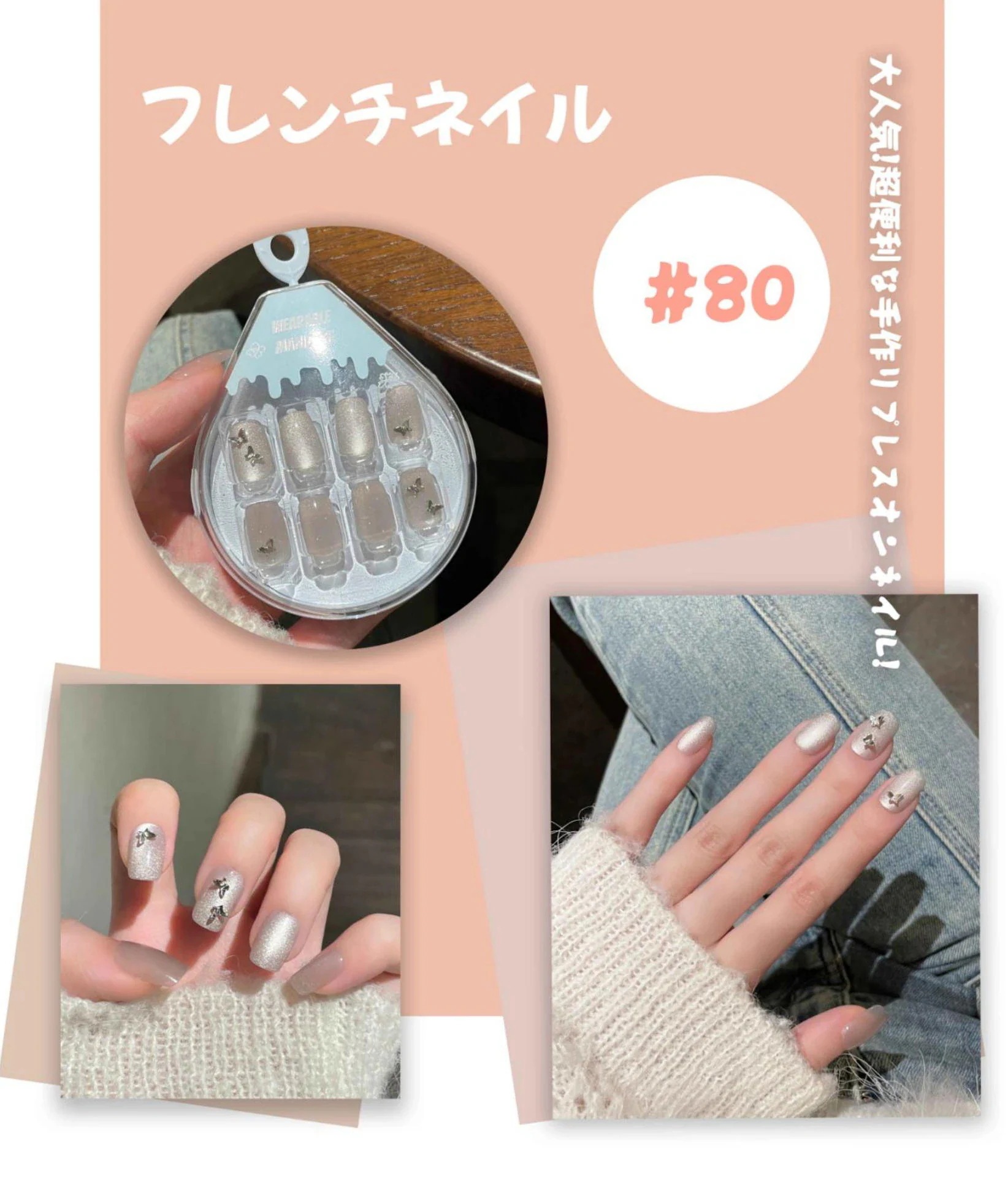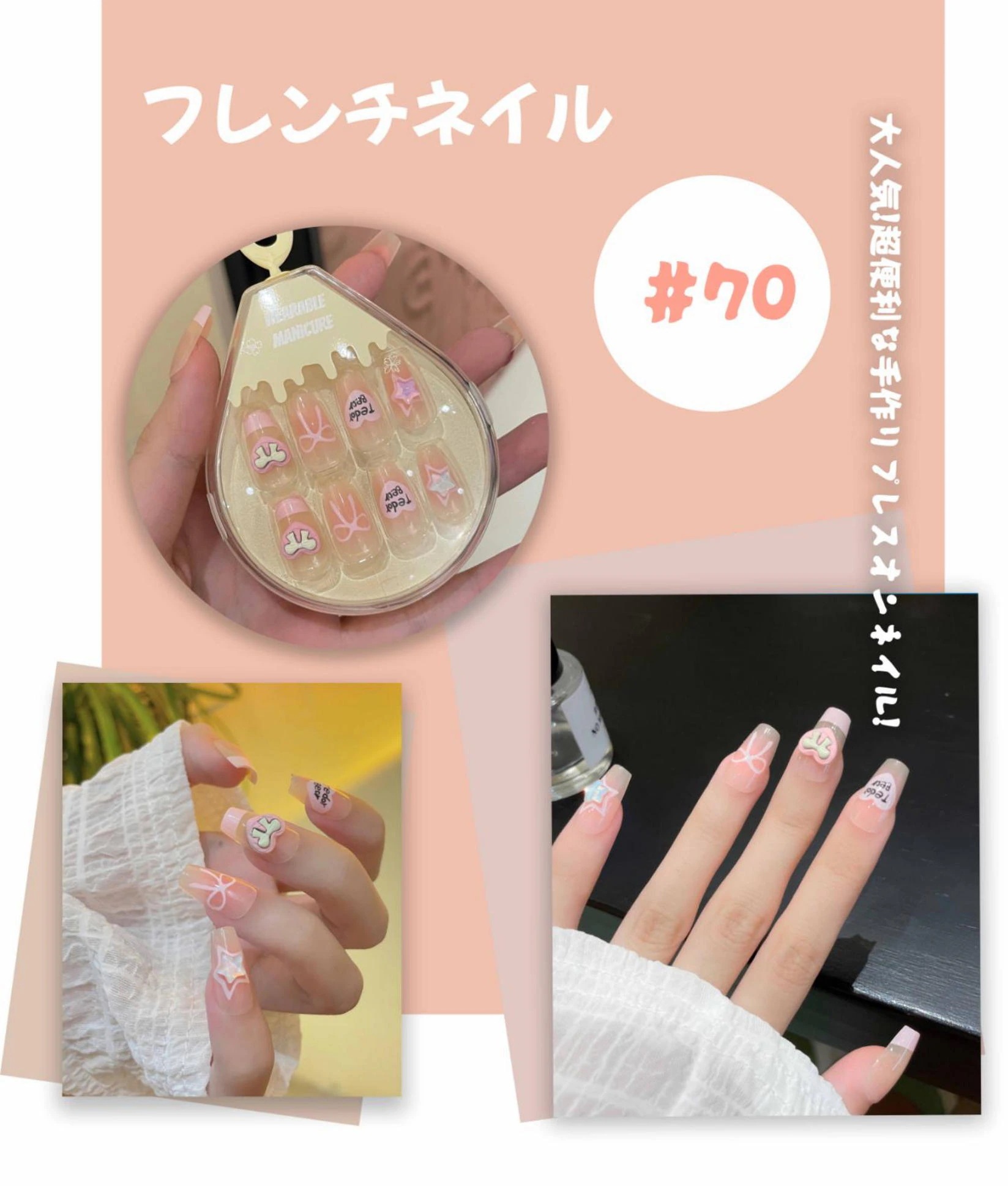 貼るだけで本当に簡単でした。デザインも写真通りで可愛いです。サイズも意外と合いやすく、付属の粘着グミでしっかり密着しました。遠目だとサロンネイルみたいで満足。耐久性も問題なくて、この値段なら十分過ぎる満足感です。