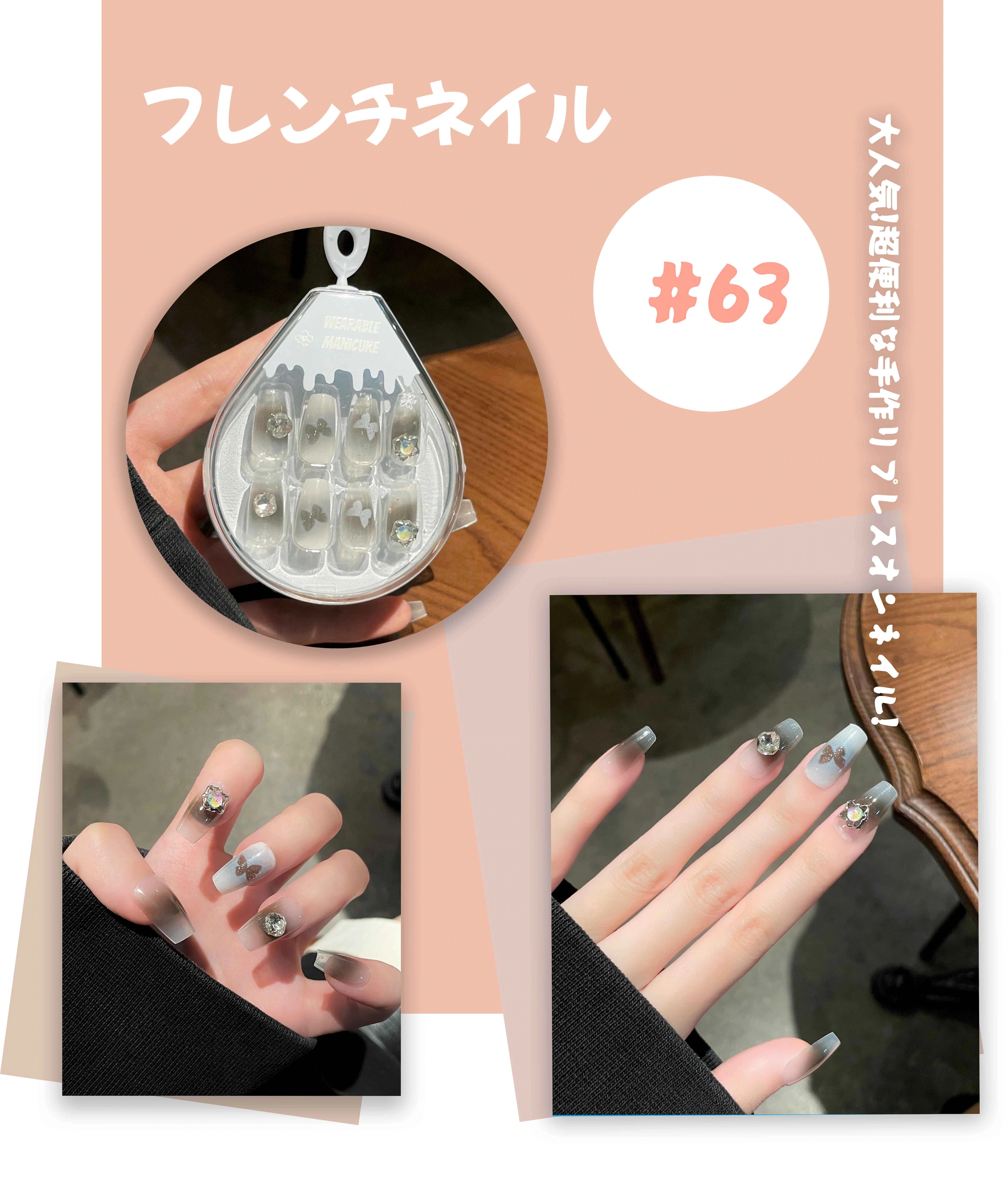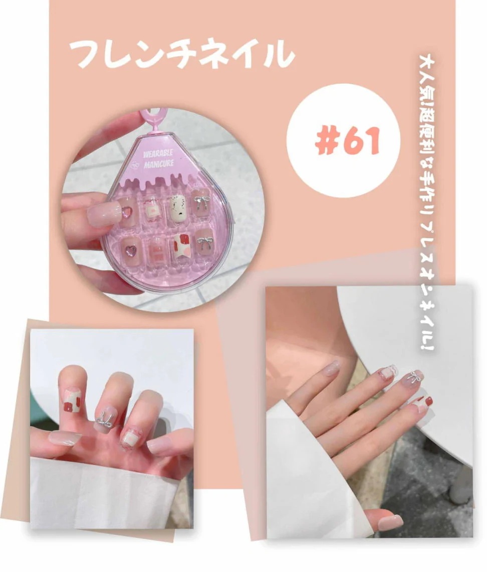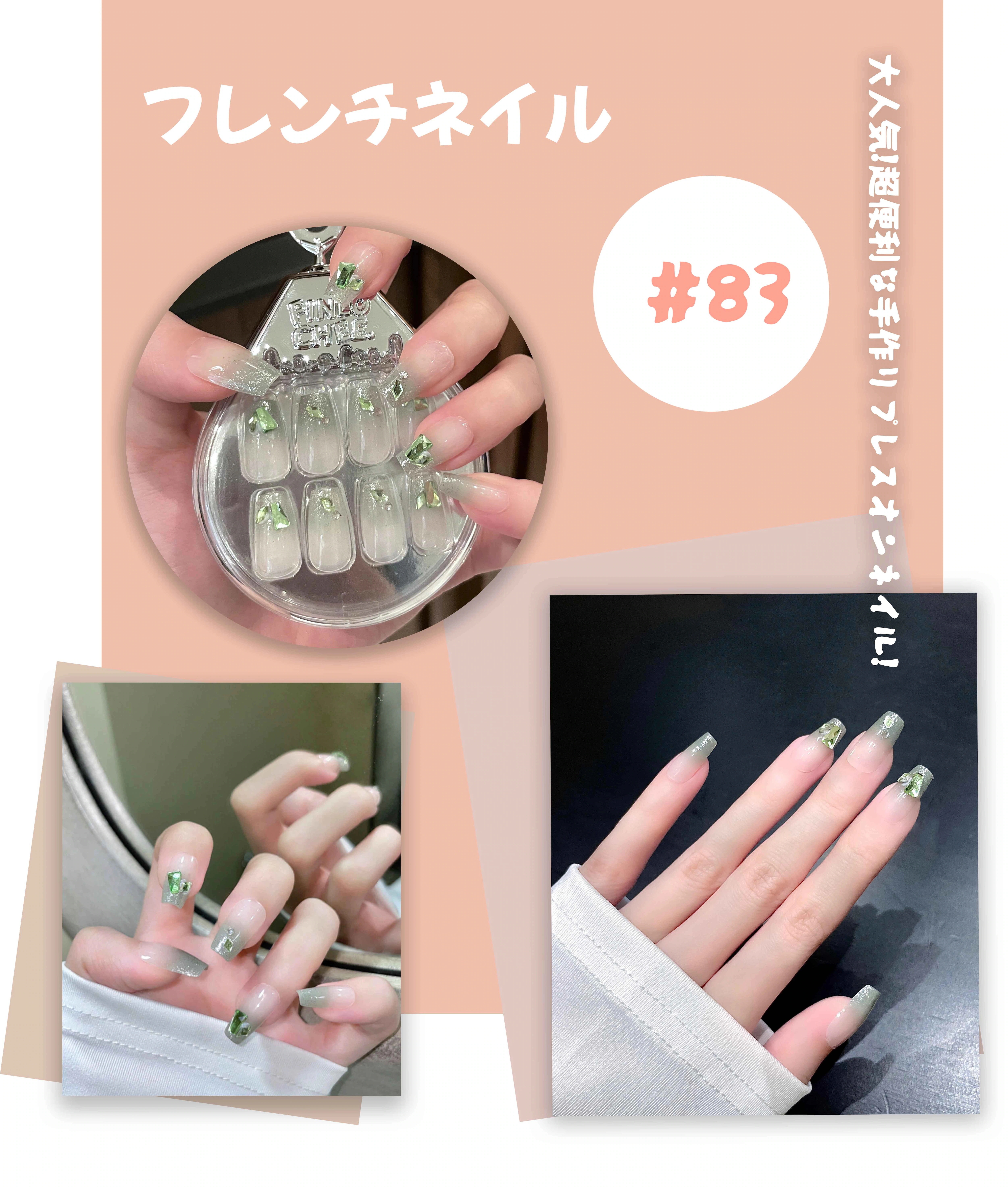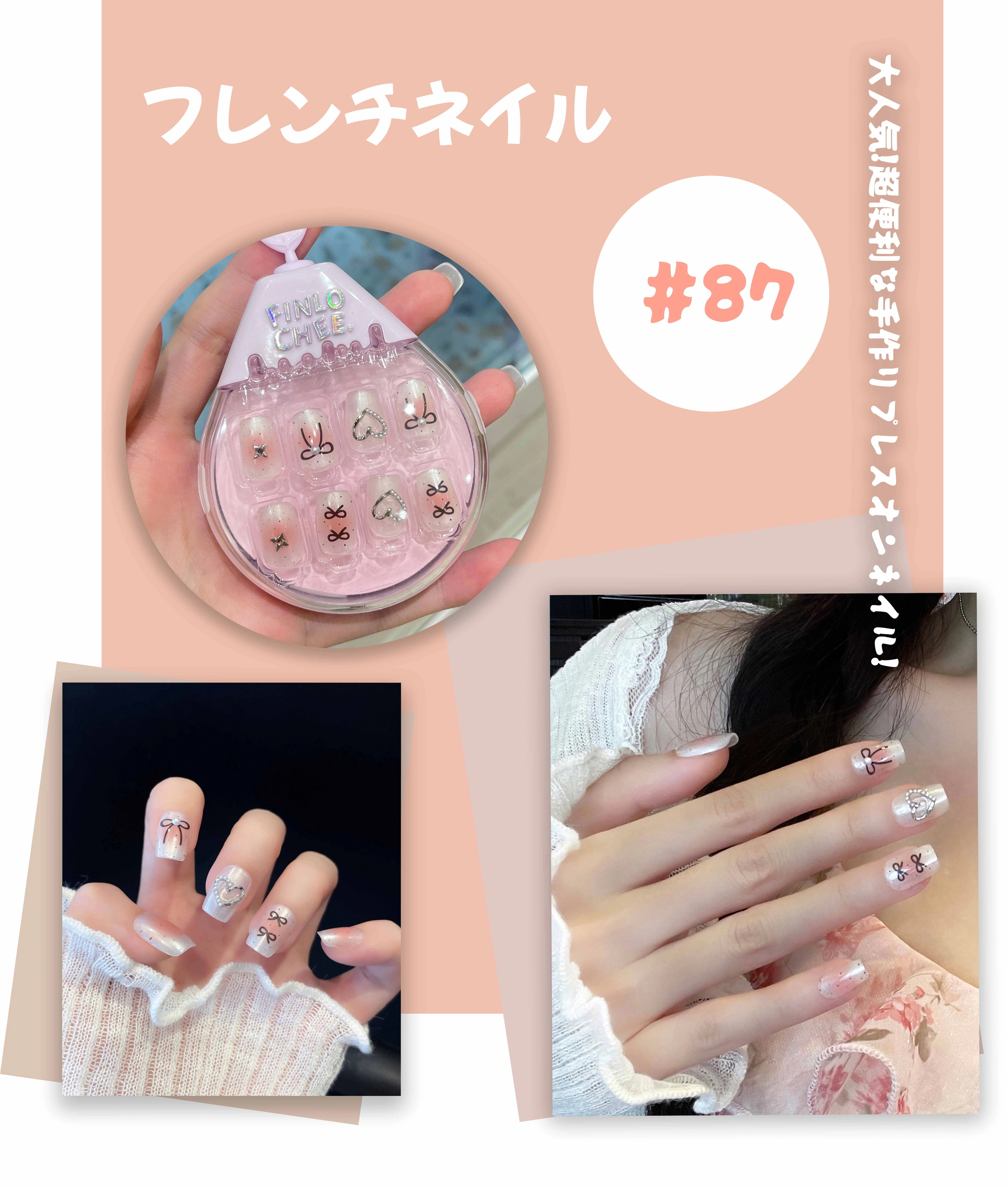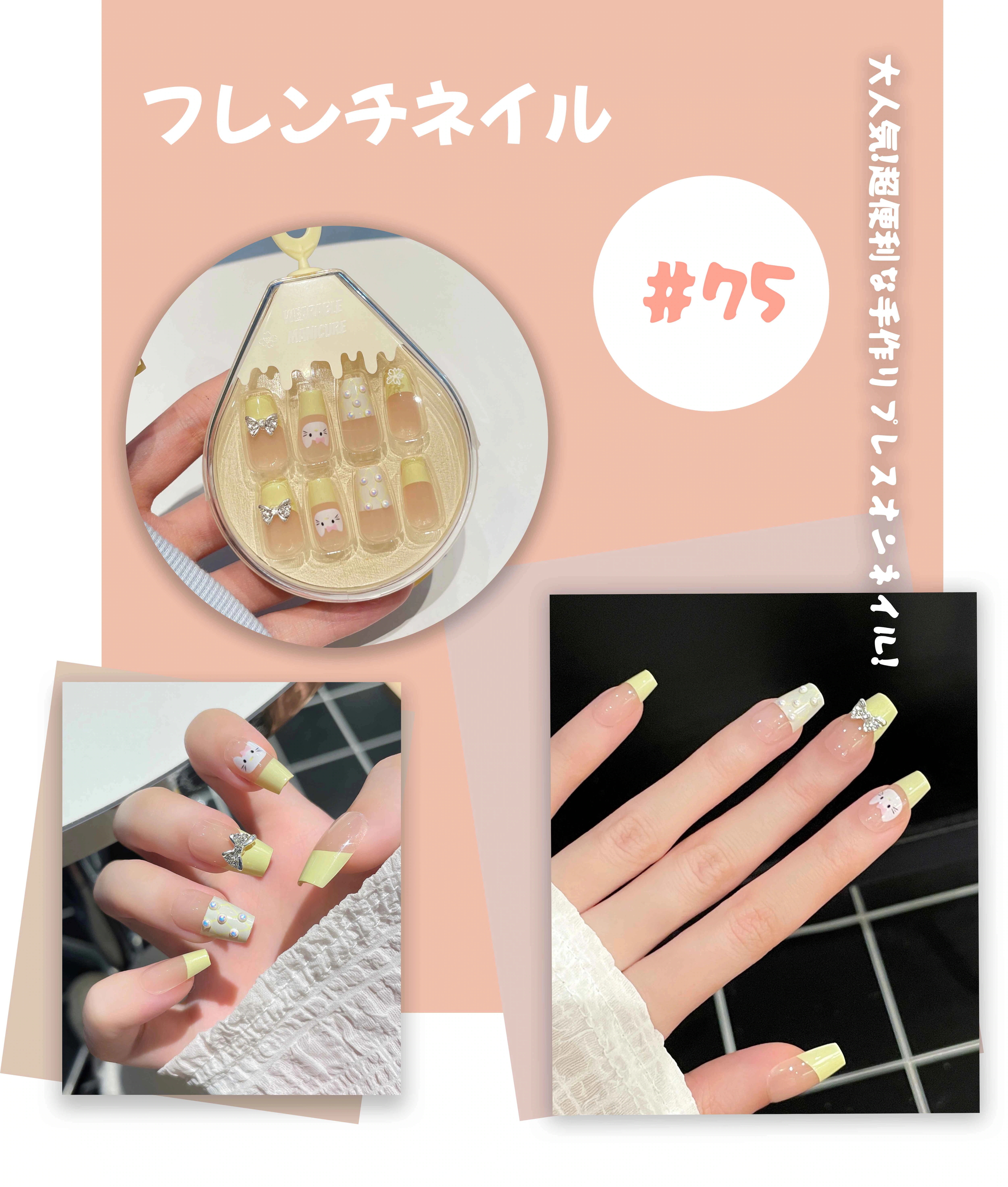 貼るだけで本当に簡単でした。デザインも写真通りで可愛いです。サイズも意外と合いやすく、付属の粘着グミでしっかり密着しました。遠目だとサロンネイルみたいで満足。耐久性も問題なくて、この値段なら十分過ぎる満足感です。