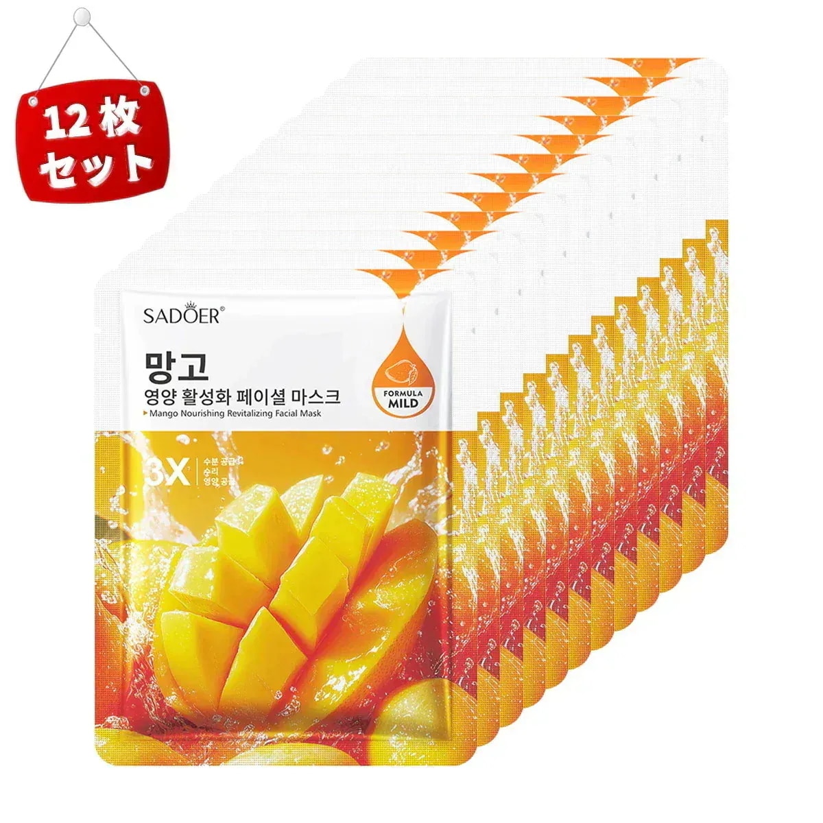 SADOER天然フルーツフェイスマスク 個包装,保湿パック 個包装【売れ筋タイプ 12枚セット】シートパック,ビタミン パック,フェイスパック,顔ぱっくマスク 人気,極薄シルク生地,肌にやさしい密着シート
