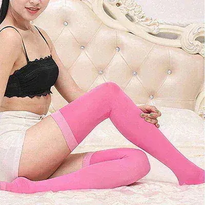 伸縮性があまりないです😵開いた時の靴下の長さに驚きましたが、履いてもほぼ同じくらいの長さになります。普通のオーバーニーソックス程度でしょうか。また、伸びないので履く時に少し苦労します。(私の足の太さ故かもしれません😅)