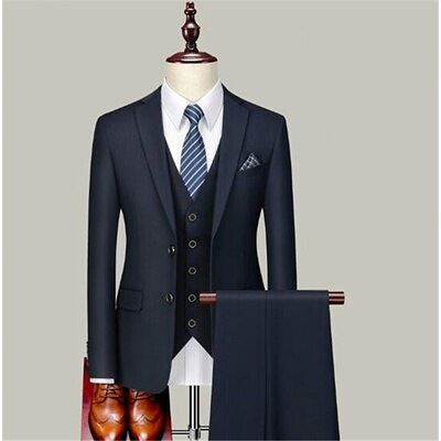 ベストが少し小さめで、ボタンは留まるけどちょっとだけ苦しい。