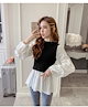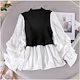 安かったから期待してなかったけどめちゃくちゃ可愛い!ニット部分がほどよいフィット感でスタイル良く見えるし、シャツ部分も袖が段のフリルでボリュームもあってとにかく可愛いです!これからの時期にピッタリ☆161cm50キロで普段Mサイズですがレビューを参考に1サイズ上のLを注文、サイズ感ばっちりでした!