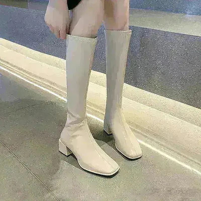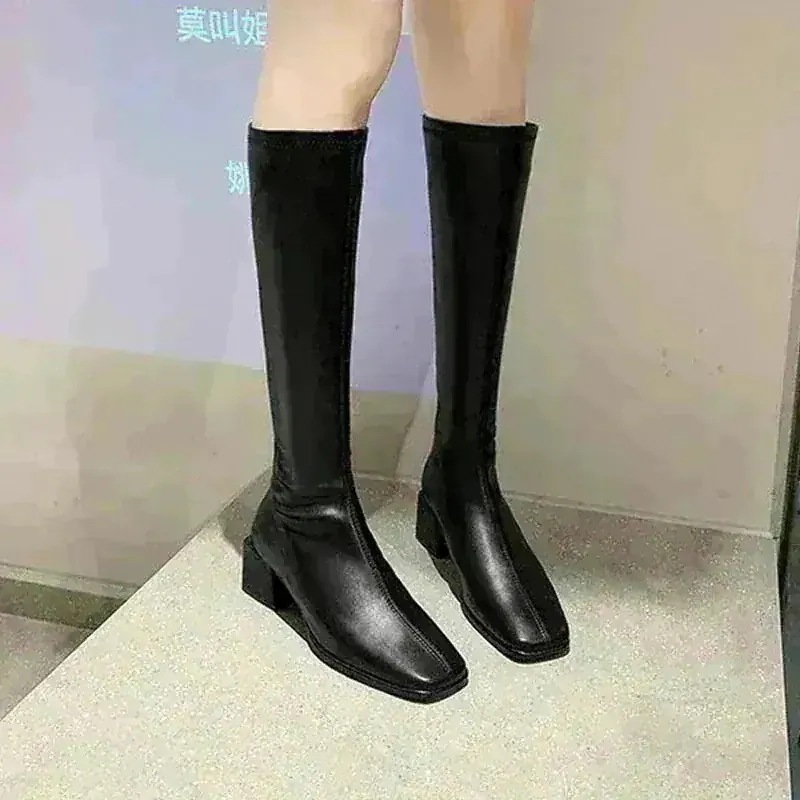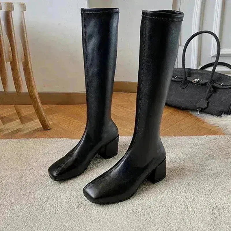 素材は硬めのタイプを購入しました。身長150cmで23.5を履くと膝少し被るくらいになりましたが、足首の部分をくしゅくしゅさせて調整は出来たくらいの柔らかさだったので問題ないです! -