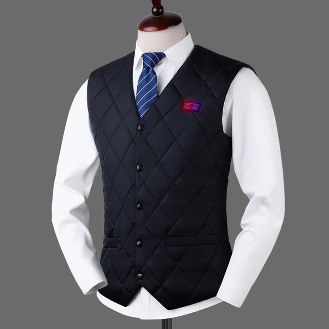 身長178cmでXXLにしましたが、パーカーの上に着ると丁度いいサイズ感です。軽いのに暖かく、安っぽさは無いです。早速モバイルバッテリーを繋げて3段階の中間にして外に出てみたけど本当に暖かいです。ポケットに手を突っ込むと手まで暖かい。バッテリーをしまう内ポケットが結構大きいので、大抵のモバイルバッテリーは入れられると思います。