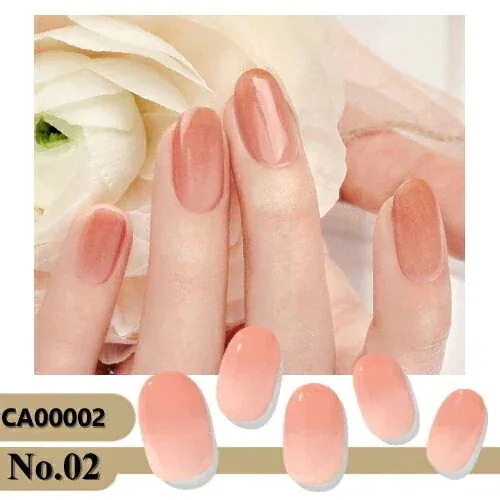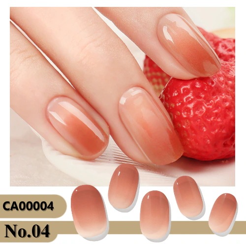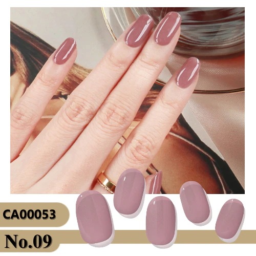縁までしっかり貼り付けて、もう片方の指でもしっかり押さえてから硬化させると、本当に持ちがよいです。市販のジェル用トップコートを塗ってつやつやに。自爪が伸びるので、色味によっては根元は目立ってきますが、持たせて最長20日くらい。発色もよく、すごくお気に入りです。