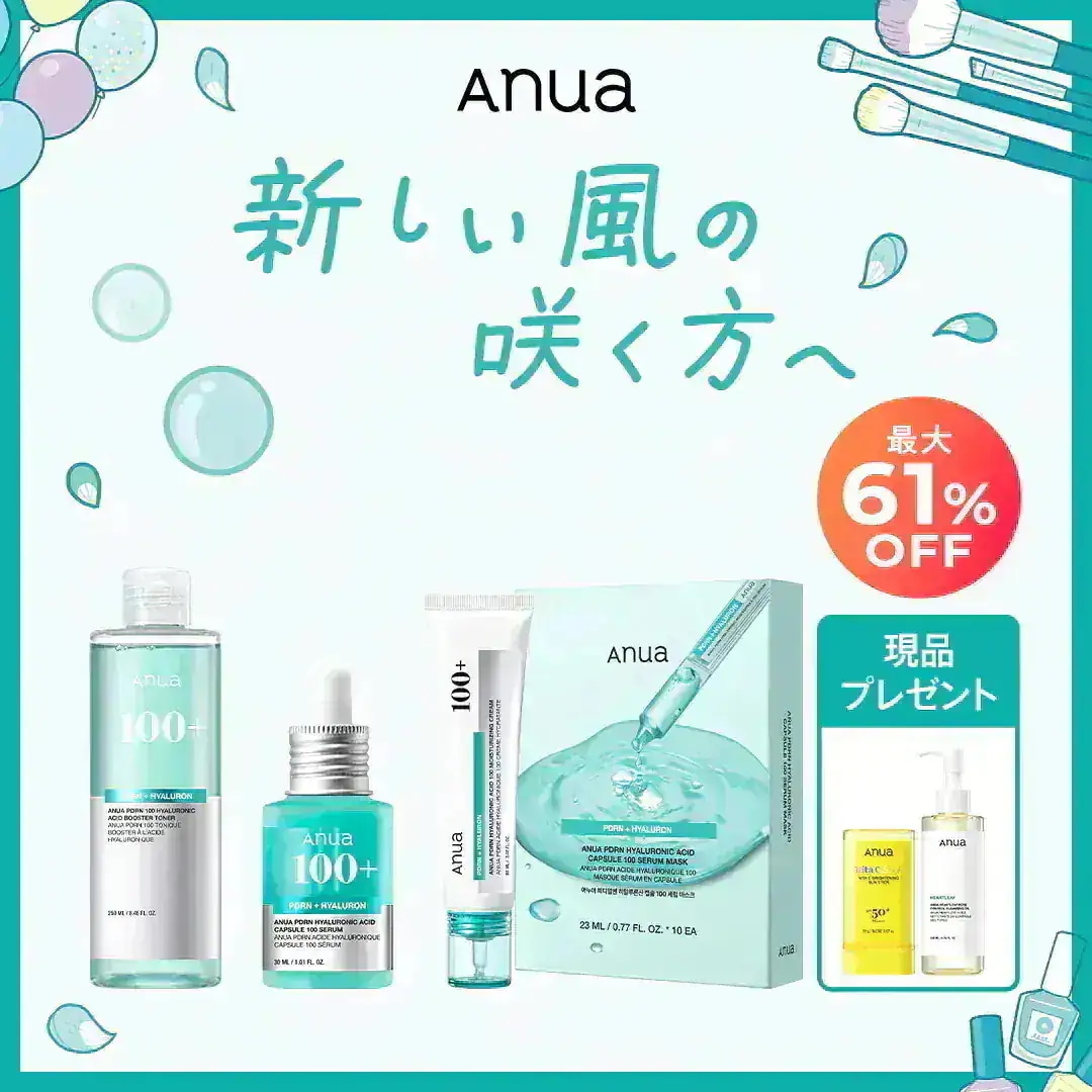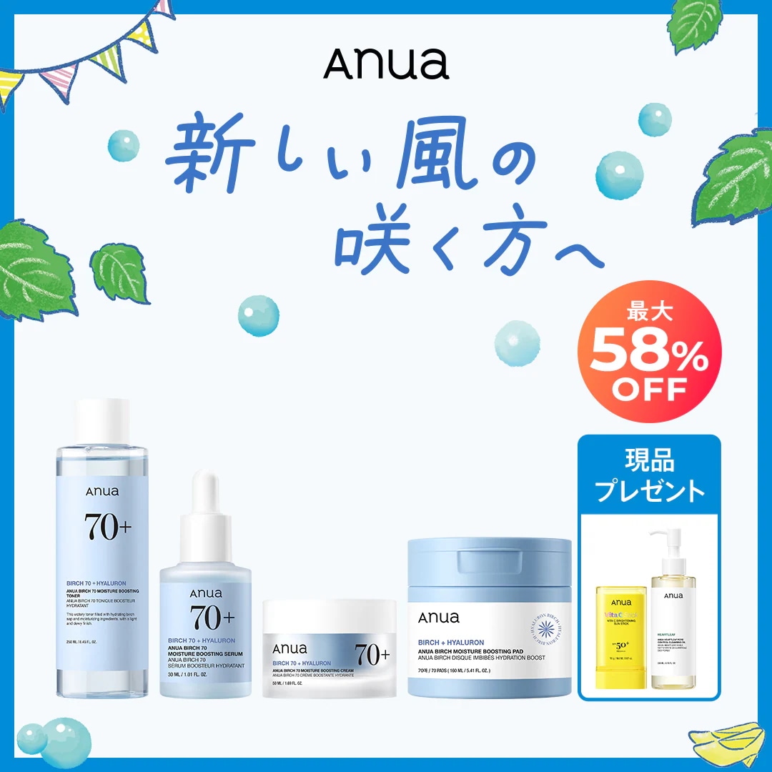 メガ割で購入。LIVE中購入特典たくさん、箱の外はおまけでお得感すごい!そして気になった発泡タブレットを入れるトナー、じわじわ発泡で面白い。けどこれ使いきる前に泡なくなるよね?など、全然公式情報を確認してなくて戸惑うので後で調べますw 使い心地は発泡感はないです。普通につるっとぬるっと。Anuaはいつも安心なのでこちらのラインにも期待しています!