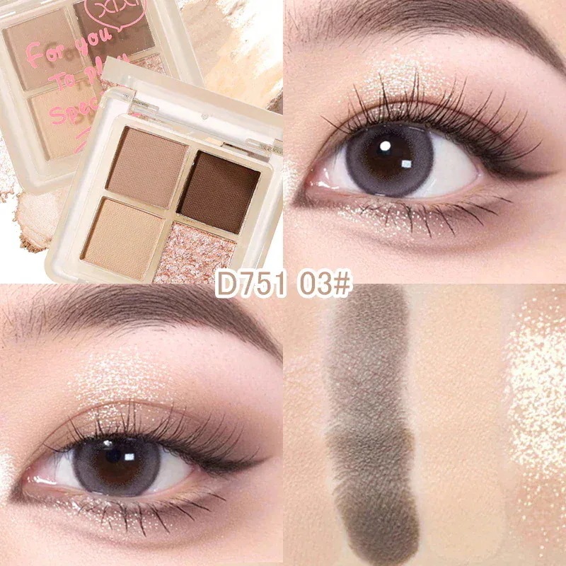 右上意外マットシャドウ単品で楽しめ+右上のラメパール(青っぽく見えますが付けるとカラーは付かずラメだけ)を重ね付けすると他のシャドウ+ラメとパールの綺麗な仕上がりで12色楽しめました。