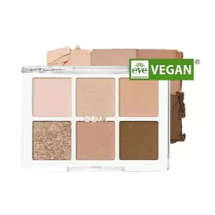 クリオやロムアンドを愛用していたときにカルミンでアレルギーが出てからアイシャドウパレットを買うのが難しくなりましたが、こちらはヴィーガン認証とっていて安心して買えました!これまでアミューズのヴィーガンパレットを何個か愛用していましたが、こちらはアミューズよりコンパクトな分お直し用にも旅行用にも便利そうです!大粒ラメ2色なので、片方がパール系だったらさらに嬉しかったですが、今でもじゅうぶん全部使いやすい色です!写真は肉眼で見た時に近くなるように色調整してます。商品紹介画像より実物は少しピンクみがあるかなーと思います。