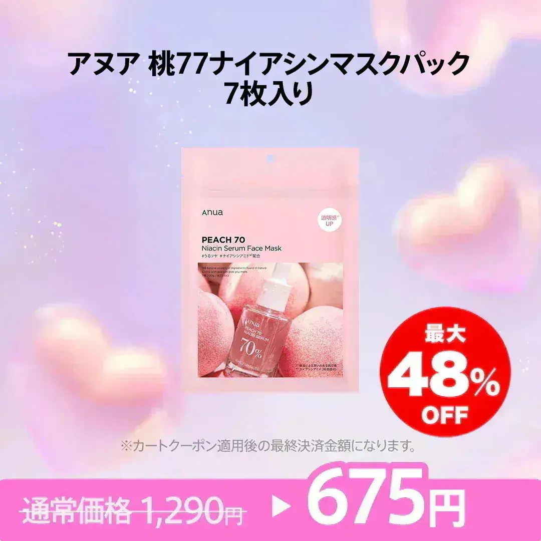 5 5kan*** 2026.01.10 選択:【最大48%OFF】 桃70ナイアシンマスクパック 7枚入り(-750円)オプション : 選択:【最大48%OFF】 桃70ナイアシンマスクパック 7枚入り(-750円) 肌タイプ : 混合肌 肌トーン : イエベ 肌の悩み : 毛穴, くすみ・色むら
