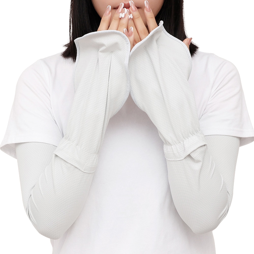 99.9%カットに惹かれて買いました。運転用にしていますがデザインは畑仕事する人?みたいな形で可愛くはないです。でも手のひら側に布がないのでハンドルを握っても滑らない!手首はゴムになっていて多少ギュッとなる感はありますが跡が付くほどじゃない。二の腕も締め付け?を調整できて良いです、私は跡になるのと着脱を考えて何もしていませんが。紫外線カット数がほんとかは分からないけど愛用しています。