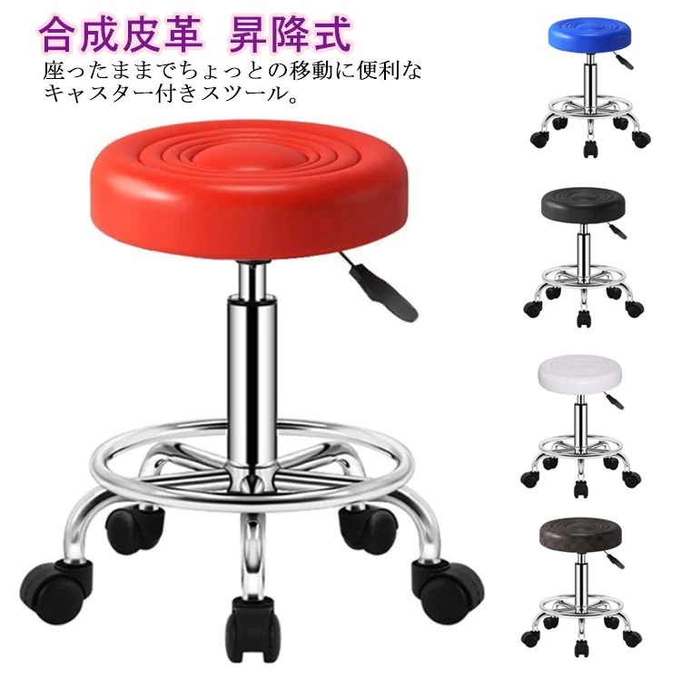 スツール キャスター付き 丸椅子 ラウンドスツール 丸イス 昇降式 高さ調節可能 回転椅子 合成皮革 キャスター付き 背もたれ無し ハイ 椅子 イス カウンターチェア エステスツール ネイル サロン