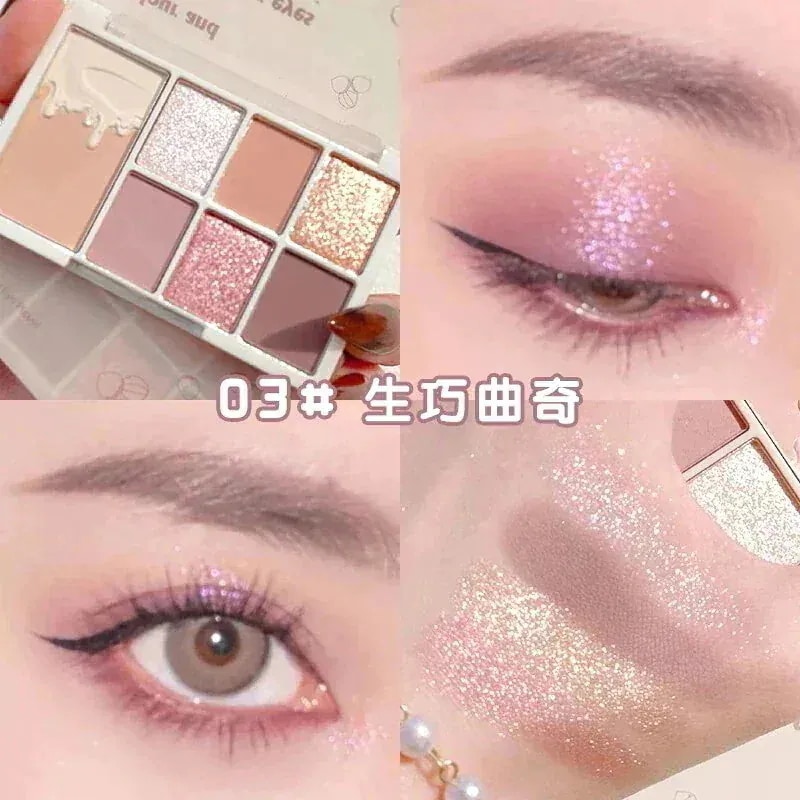 色味がかわいすぎてラメは届いてすぐ指ではがしてこの状態です。粉質はしっとりしていて発色もベースしっかりしてれば問題なしでかわいい。いろんなパターンのメイクができてこのお値段は◎春にぴったり! -