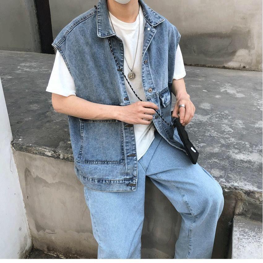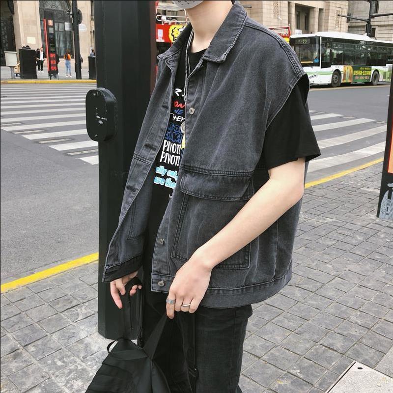 春と夏のハンサムなデニムベストメンズラージジャケット男の子ノースリーブ服流れる個性薄いチョッキ