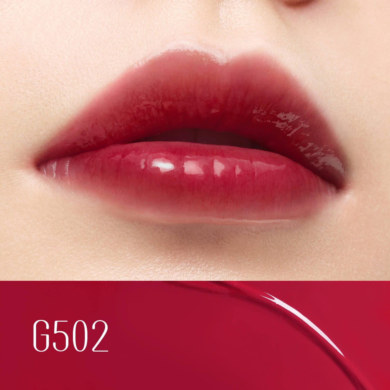 502はワインレッドそのまま。濃い色ながら落ちた時も美しい。血色と調和してイメージは白雪姫リップ。グラデも綺麗にキマる。