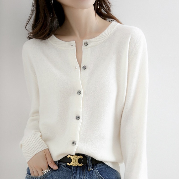 コレからのシーズン、中にブラウスなど着る前提で大きめサイズを購入しました。何年か前に買ったUNIQLOのカーディガンと並べてみるとこんな感じです。レビュー通り肌触りが良いのはなぜ?色違いサイズ違いを検討中です。 -